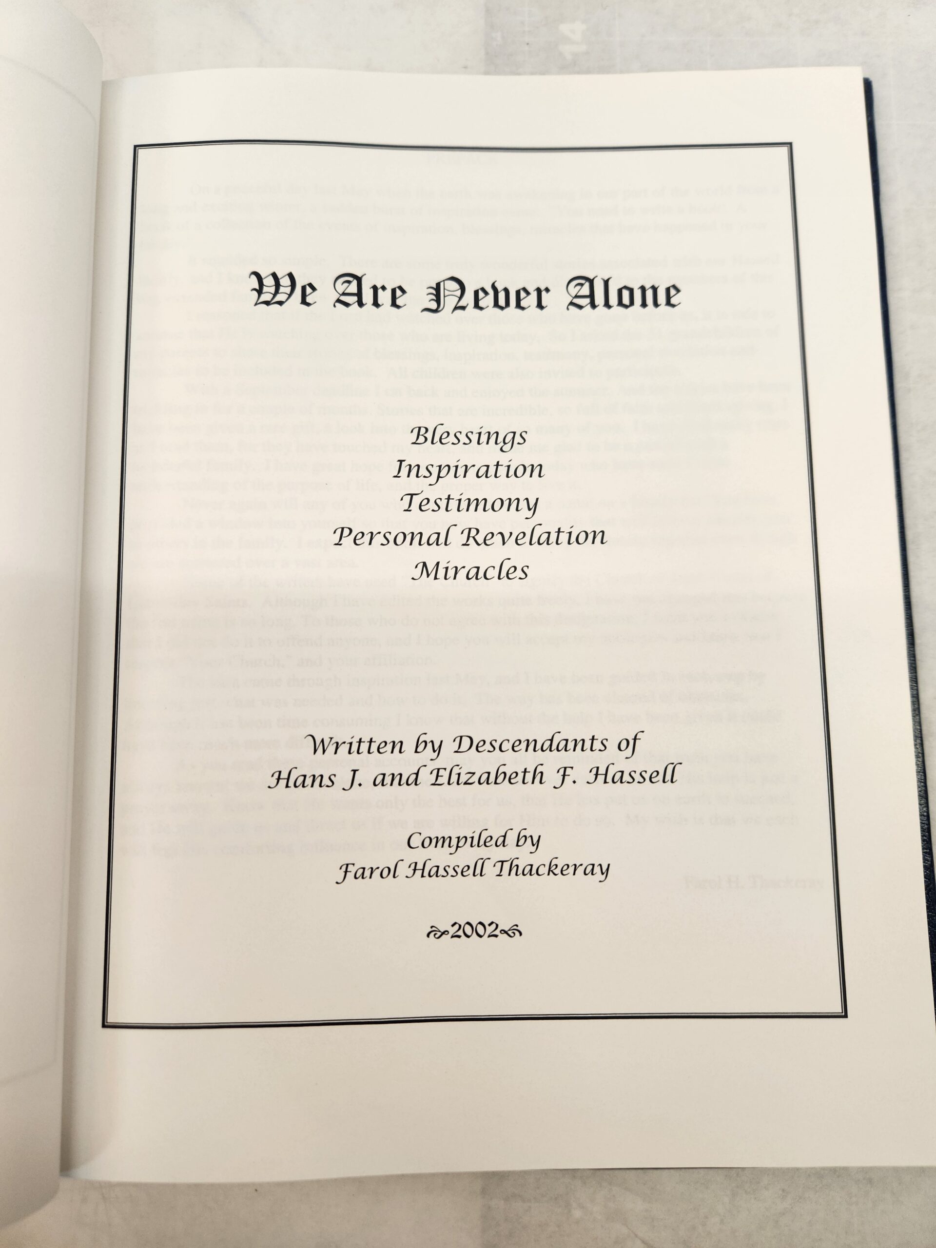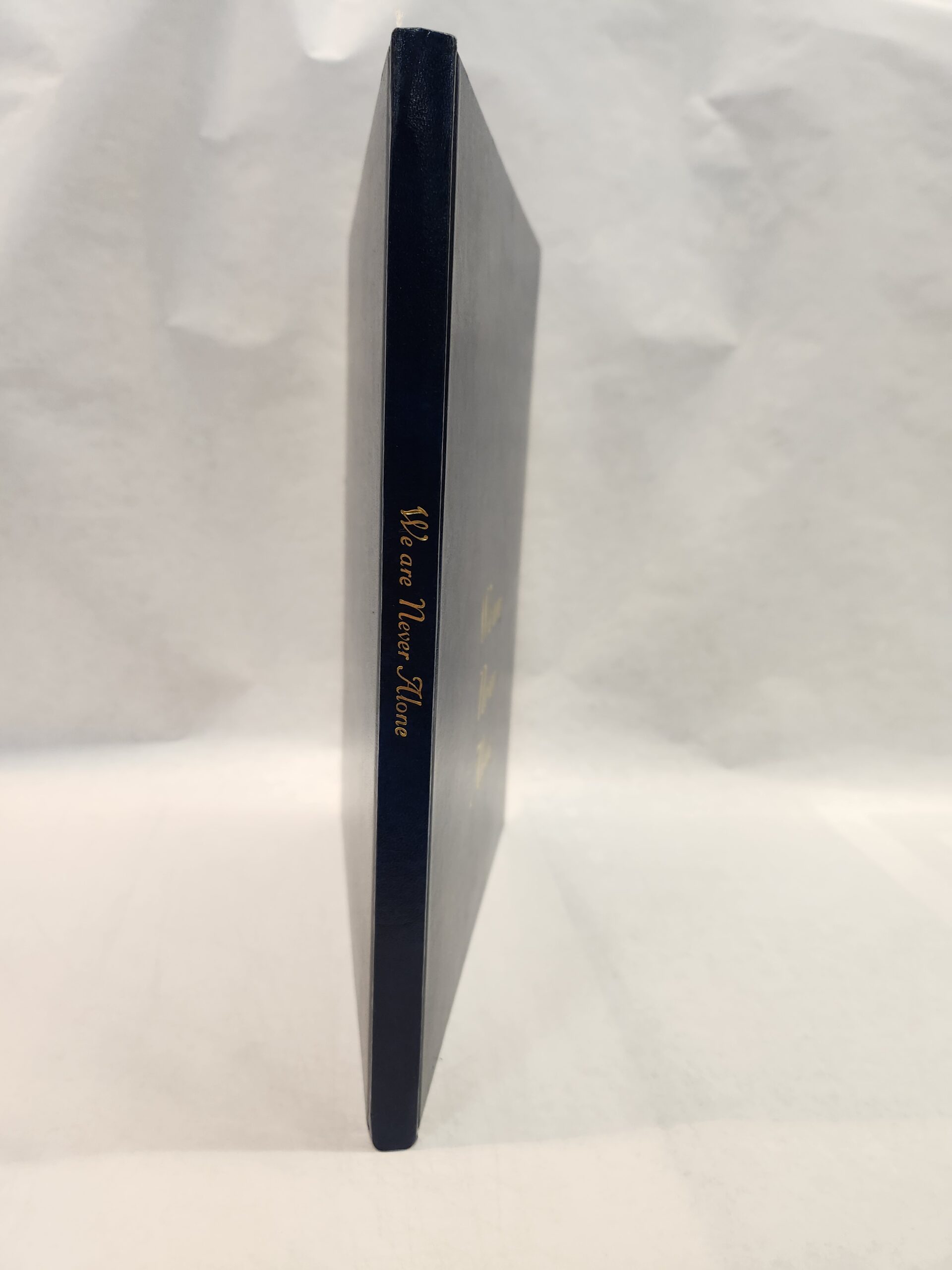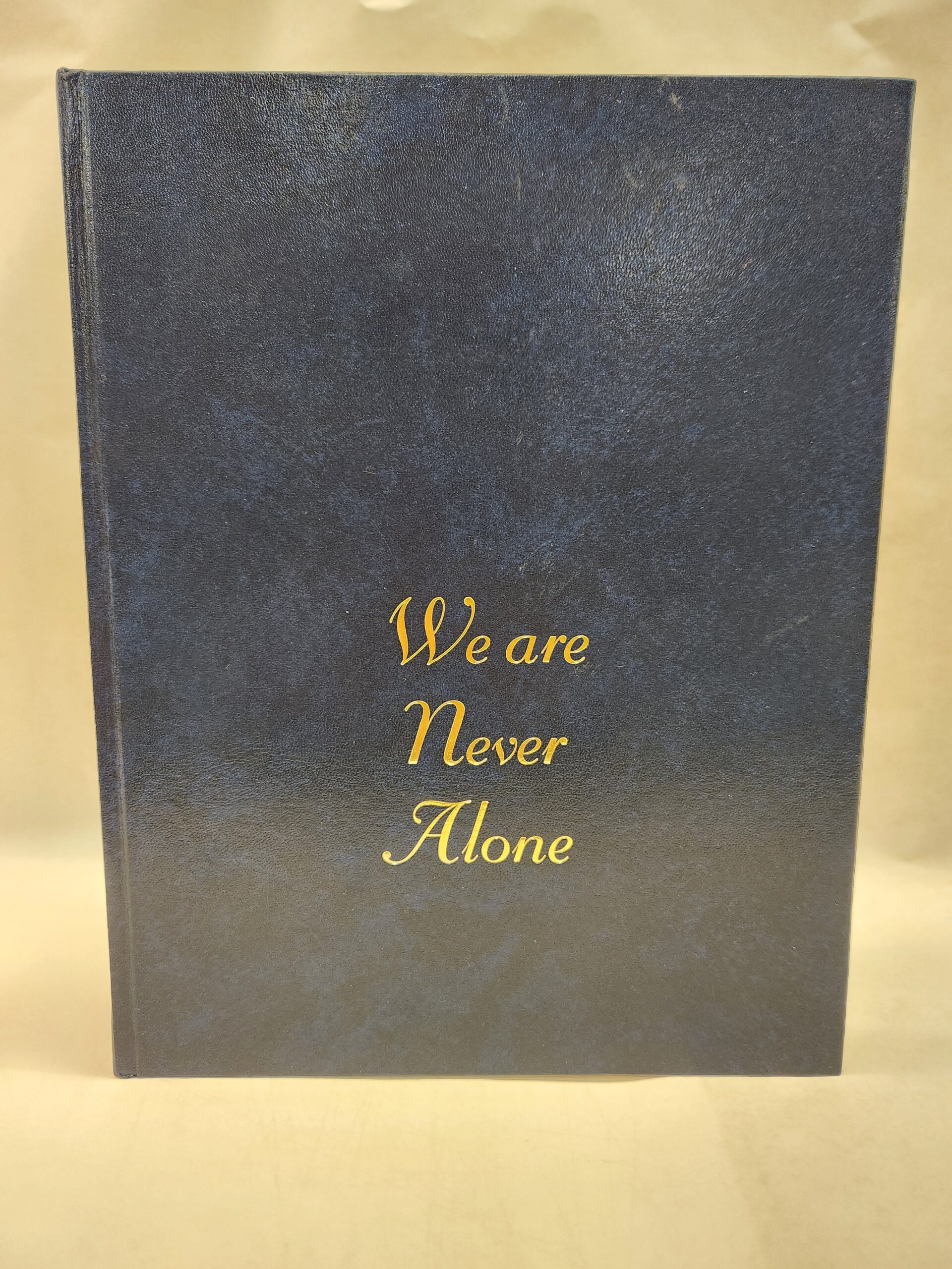 We are Never Alone (2002, Hardcover) No marks or writing on the pages. Corners and edges show some wear with scuff/dings/small bend. Binding is good. The cover, front and back, has some light scratch marks and smudges.
