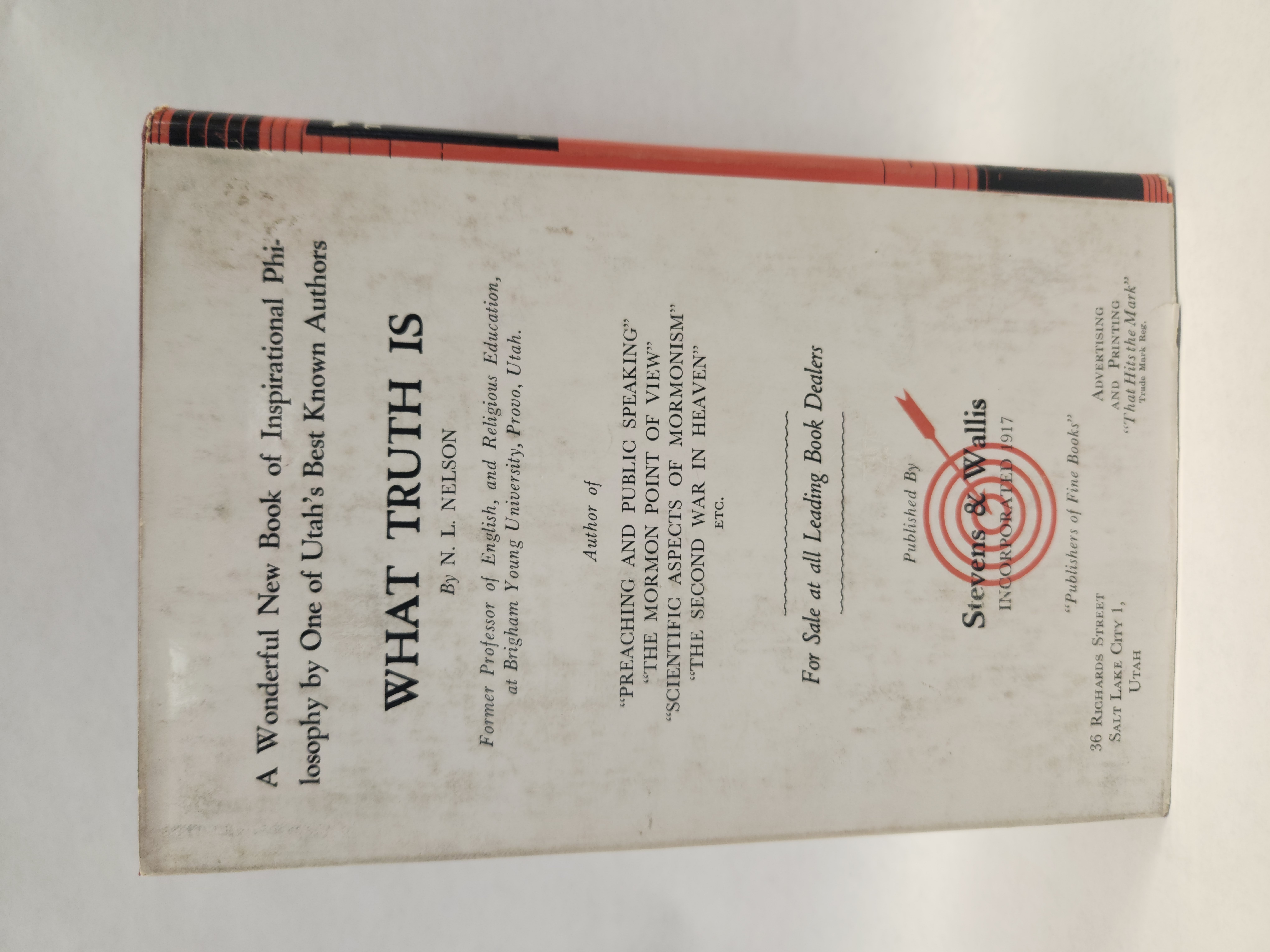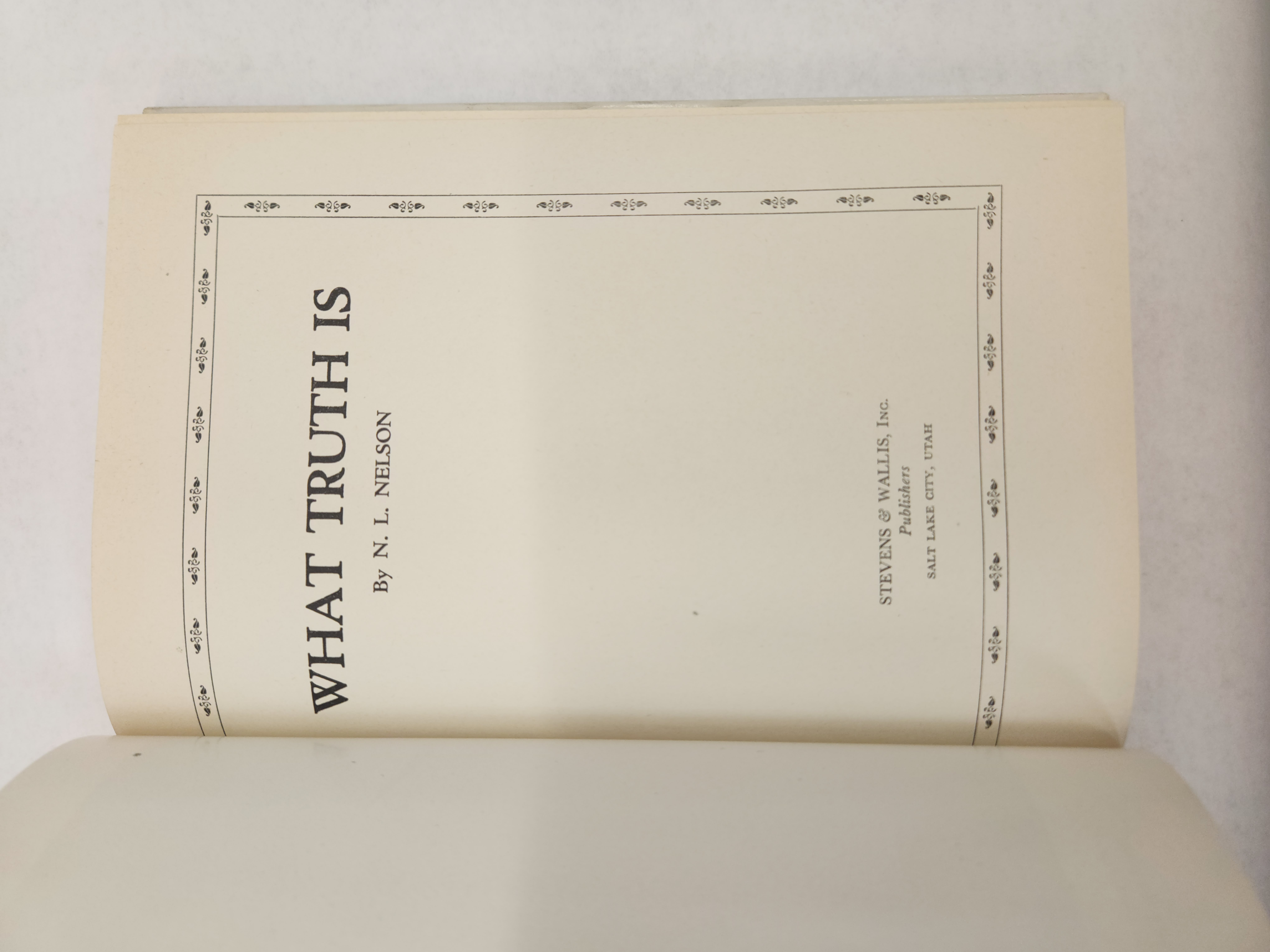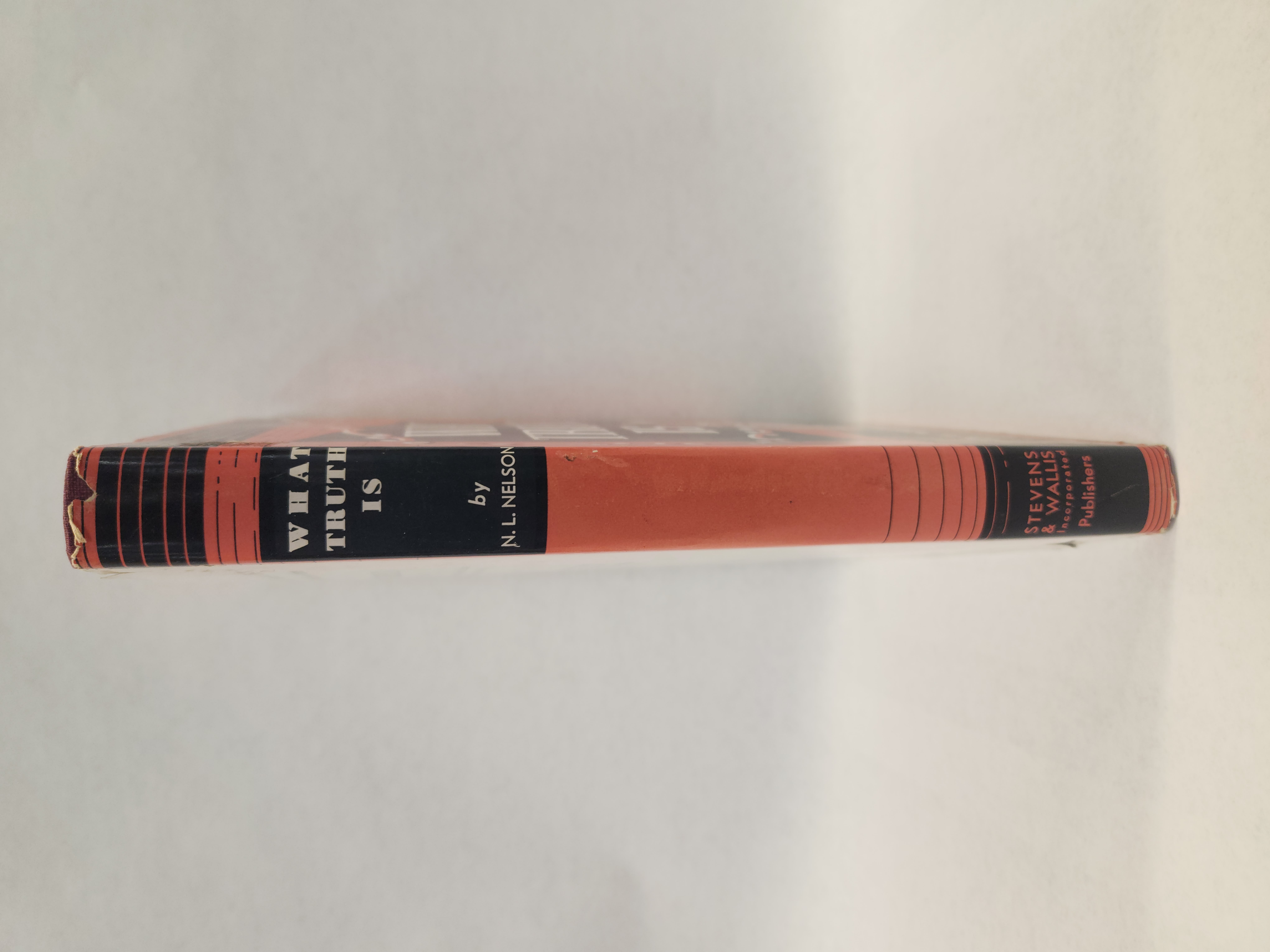 What Truth Is (1947, Hardcover w/ Dust Cover) Binding is good. No writing/marks on pages. Corner and edges show some shelf wear. Cover, front and back, has a few smudge marks, small sticker residue, and a small tear.