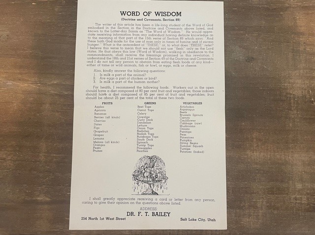 Word of Wisdom (Flyer) Dr. F. T. Bailey