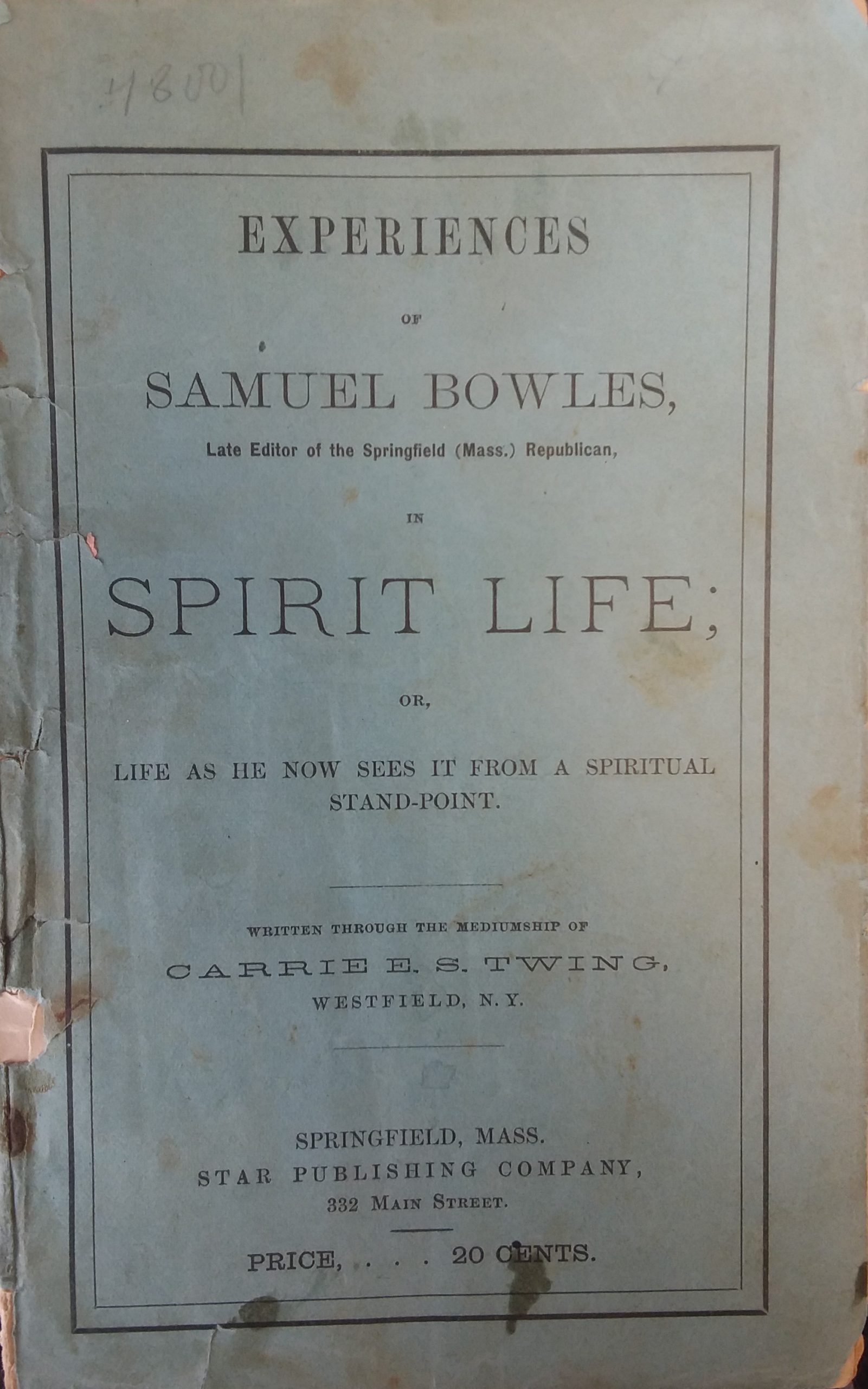 1880 – Experiences of Samuel Bowles, Late Editor of the Springfield Republican in Spirit Life – Carrie E. S. Twing