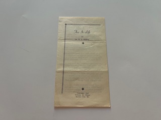 This is a small pamplet type book. It is in good condition. There are some creases. There are some bends in the corners. The bottom of the second page have been taped.