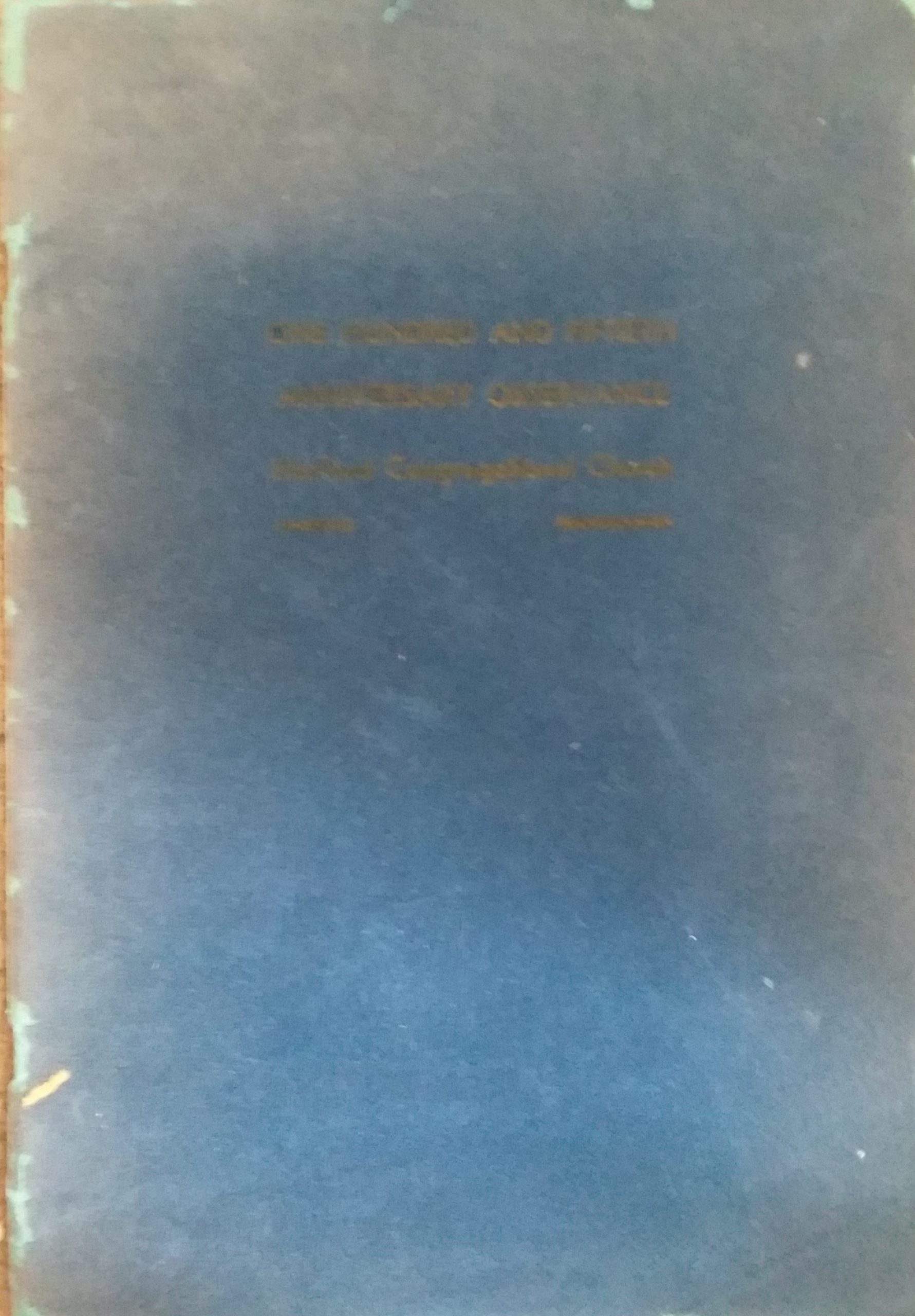Blue softcover with faded gold lettering. Some minor shelf wear with large scuffs and smudges on both covers. Large fold on the back cover. Pencil markings on the first page, but otherwise the text throughout is clean, clear, and legible. In fair condition.