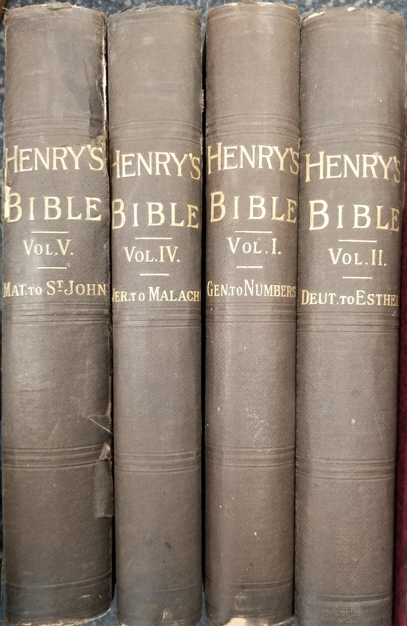 Henry’s Bible —- A Commentary on the Holy Bible with Practical Remarks and Observations — By Matthew Henry — Vols. 1, 2, 4, and 5 (Missing Volumes 3 and 6)