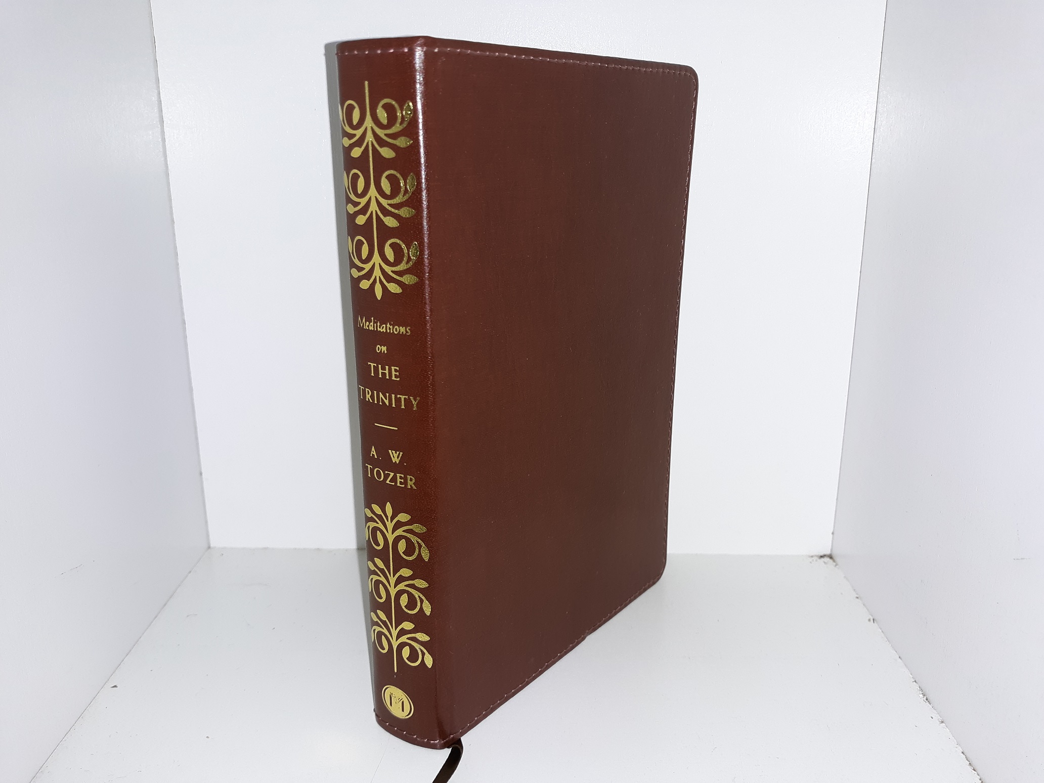 Very good condition, brown, bonded leather book. The cover has some minor scratches. The front flyleaf and the title page have writing in pencil. Text throughout is clean, clear, and legible.