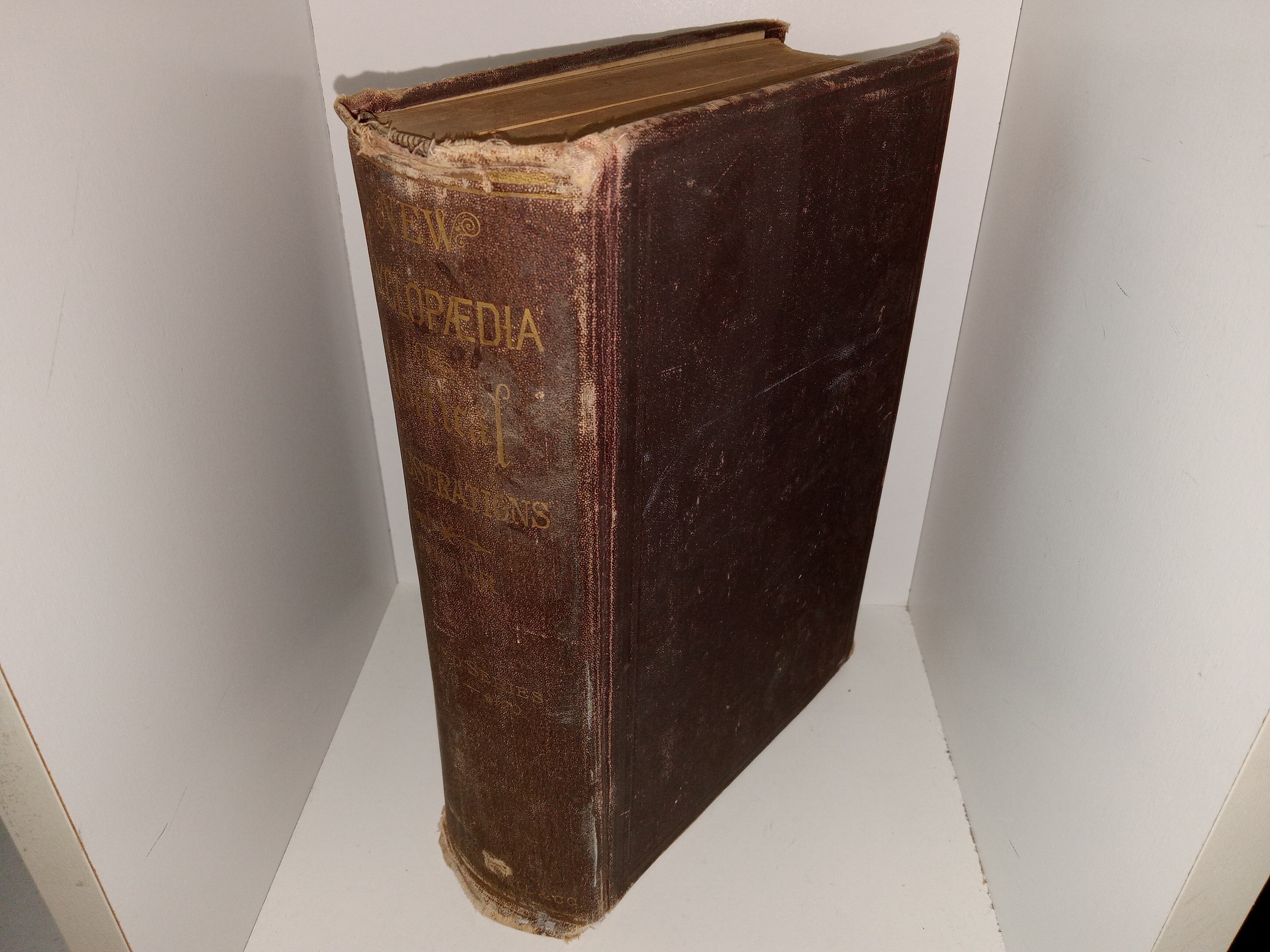 Fair condition, thick, brown hardcover with no dust jacket. The cover has scuffing, fading, some pieces torn off, fraying, tears, and some creasing at the corners and edges. The internal binding is torn in a way that detaches the front cover and the spine from the binding, but leaves the back cover still attached. Some pages have stains, creases, some small pieces torn off, tears, or scuffing. The front flyleaf has writing in pencil and eraser marks.