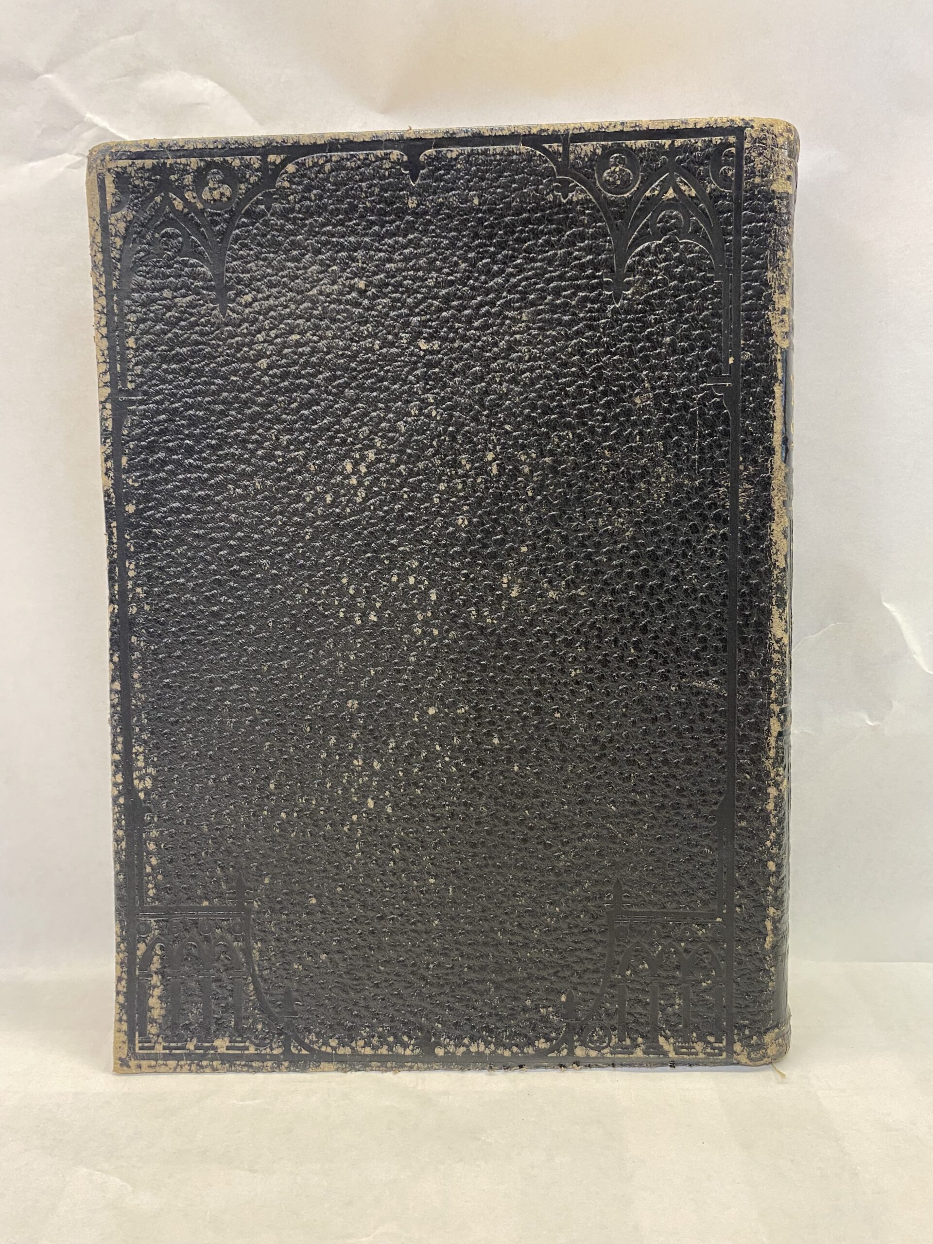 Acceptable condition. The leather is very worn leading to heavy fraying, bending, scratches, scuffs, and discoloring due to age. The first few pages are slightly creased at the corner with the first and last few pages having many smudges. One of the front cover pages have writing in pen, and the back cover page is heavily torn. The rest of the pages are clean and unmarked. The binding is very loose. The edges of the pages have many scratches.