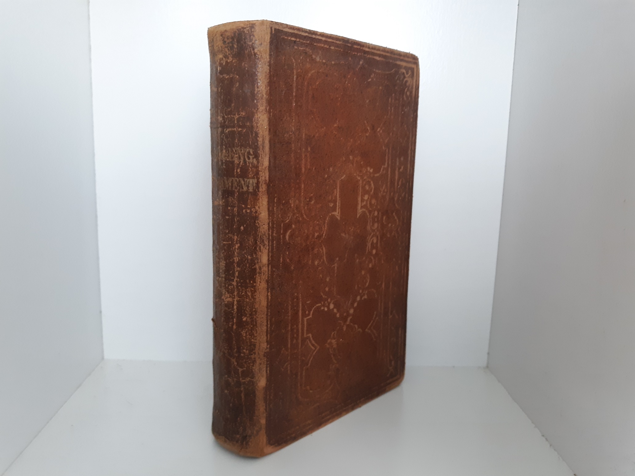 Fair condition, brown leather-bound book. The cover ahs scuffs, scratches, fading, some cracks along the edges, along with some fraying at the corners. The flyleaf has some writing in pencil. There are stains throughout the book that do not interfere with the legibility of the text…………………………v1 Bx1452C
