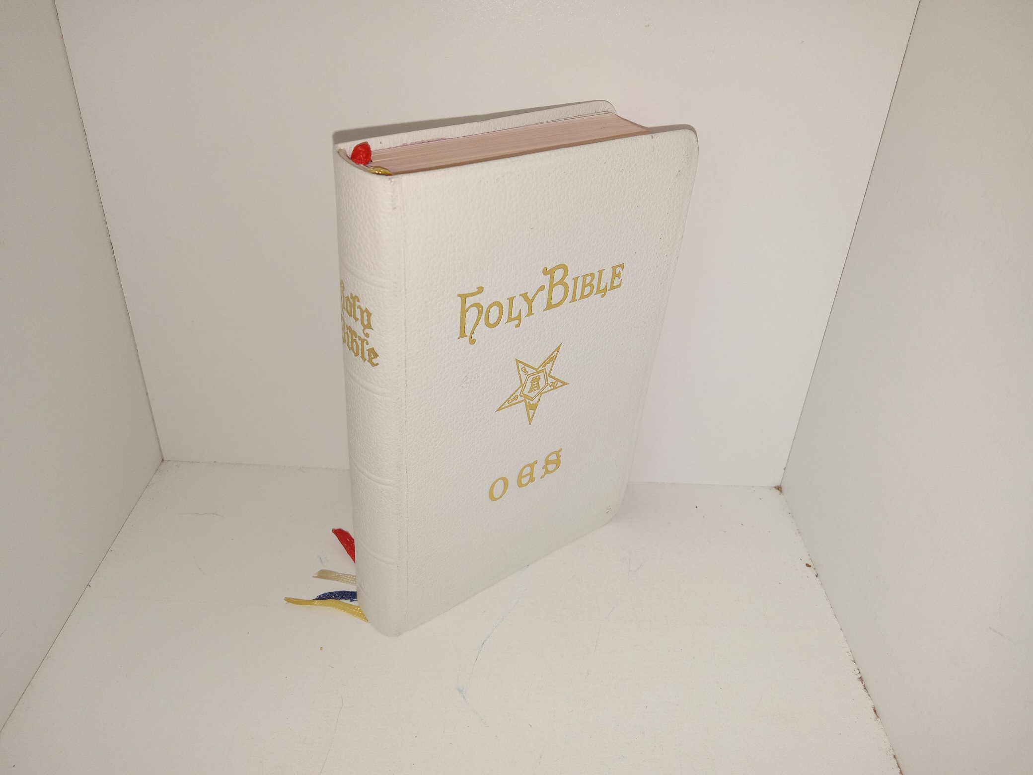 Fair-good condition, small, white vinyl book. The cover has some tiny stains. Some pages have tiny stains. The front inside cover has writing in pen. The title page has writing in pencil and eraser marks. Text throughout is clean, clear, and legible.