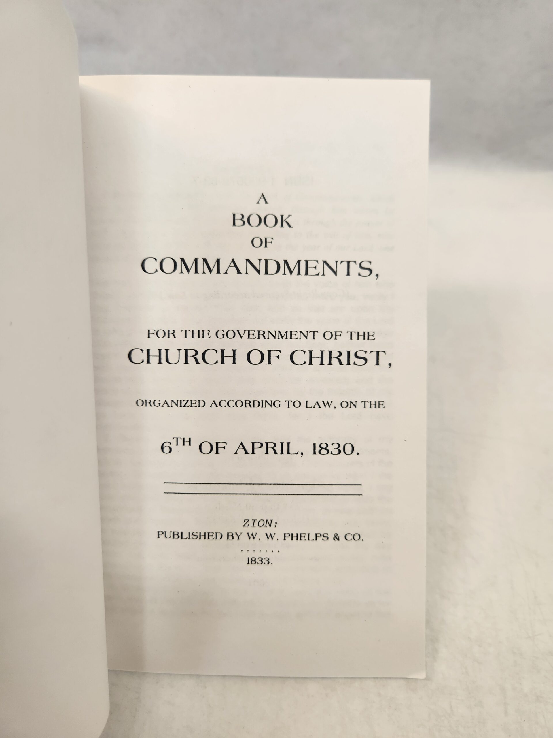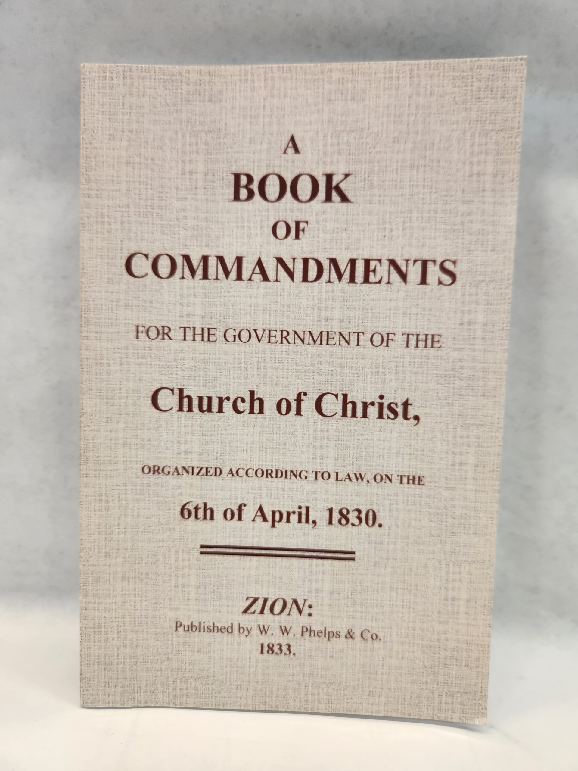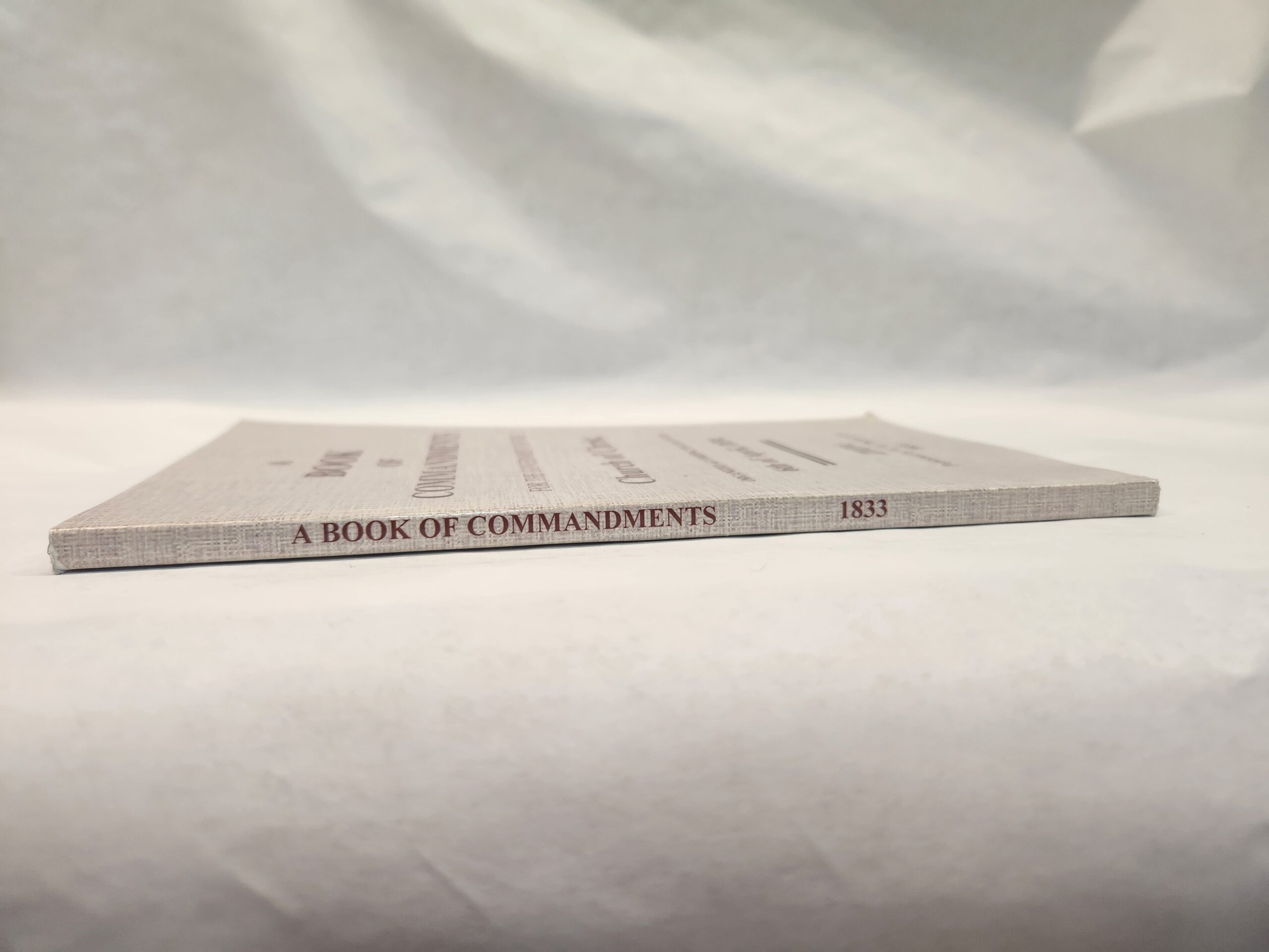 A Book of Commandments:: For the Government of the Church of Christ, Organized According to the Law, on the 6th of April, 1830 (2001 Reprint, Paperback) No marks/writing on pages. Corners and edges show moderate shelf wear with light scuffs and dent. Binding is good. Cover, front and back, has light scratch marks.