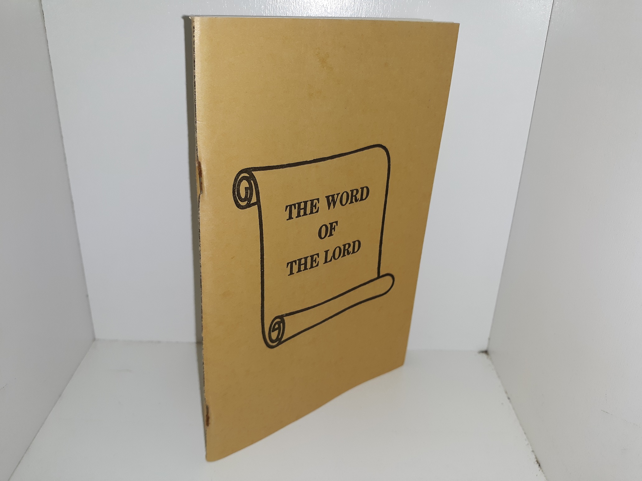 Good condition, thin, staple-bound, tan, softcover booklet. The cover has some creasing. The title page has writing in pencil. Text throughout is clean, clear, and legible.
