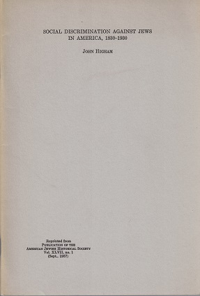Gray softcover booklet; good to very good condition. By John Higham. Reprinted from Publication of the American Jewish Historical Society, Vol. XLVII, No. 1 (Sept 1957). 33 pages.