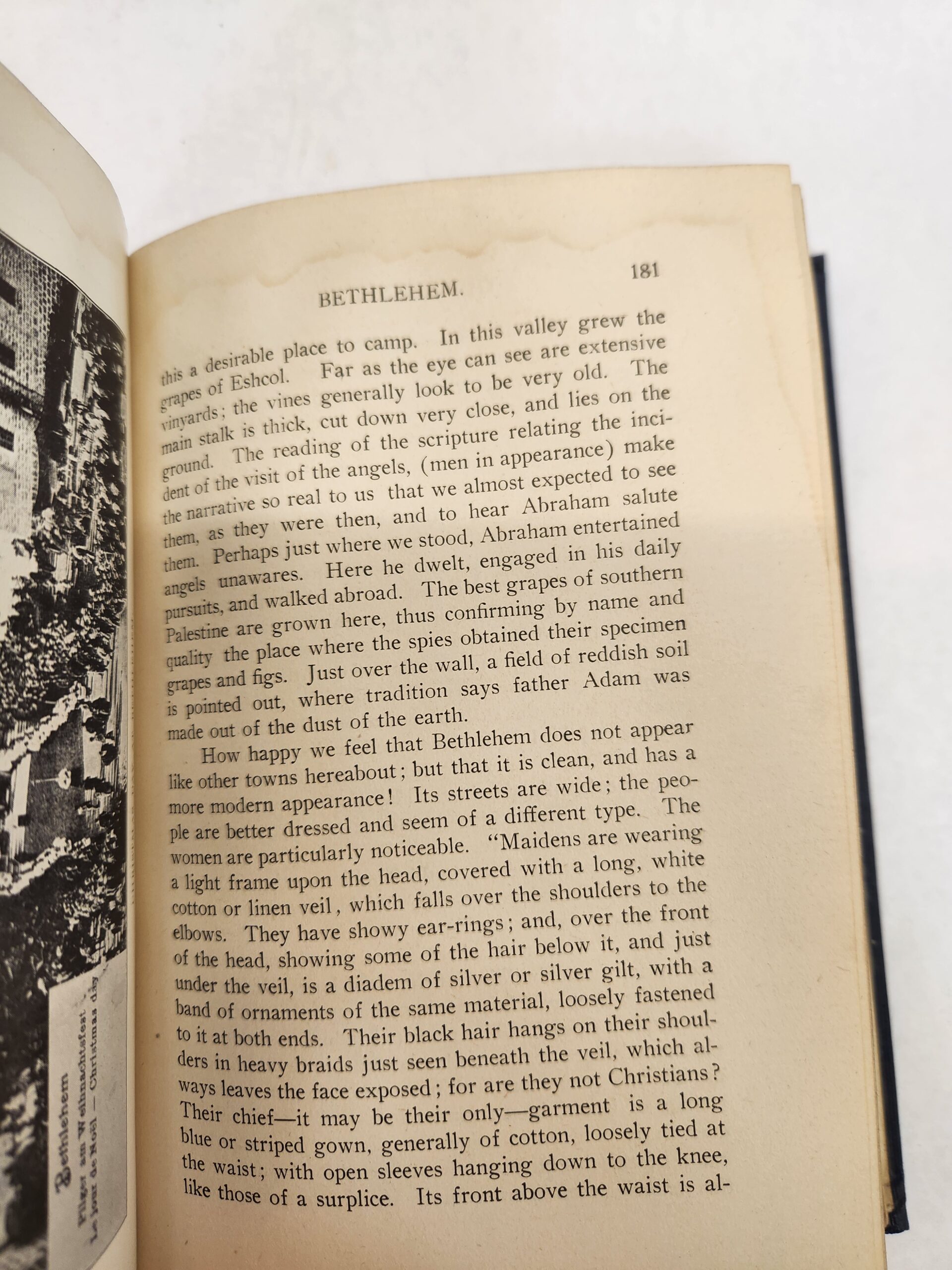 The Holy Land (1912, Hardcover) No writing or annotations on pages, but there is some water damage to edges of the pages (see pic in gallery for example). Binding is good but starting to loosen slightly. Corners and edges show shelf wear with scuff marks and dings. Cover, front and back, has some scuff marks, water marks, light scratch marks, and smudge marks.