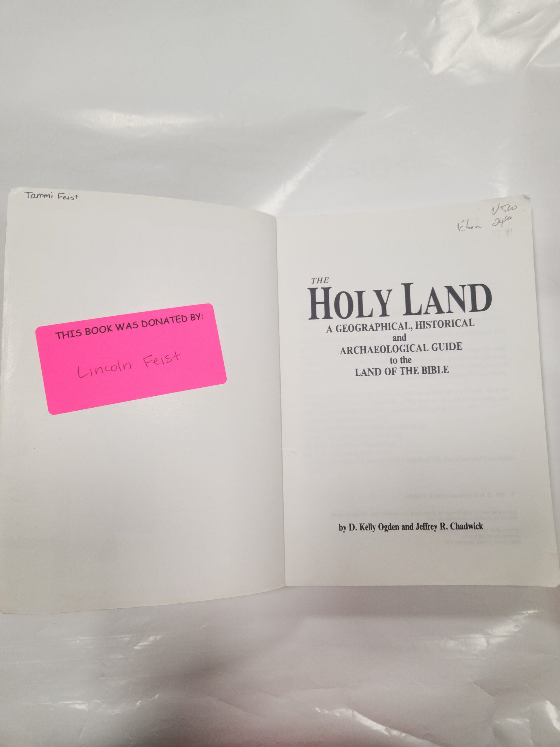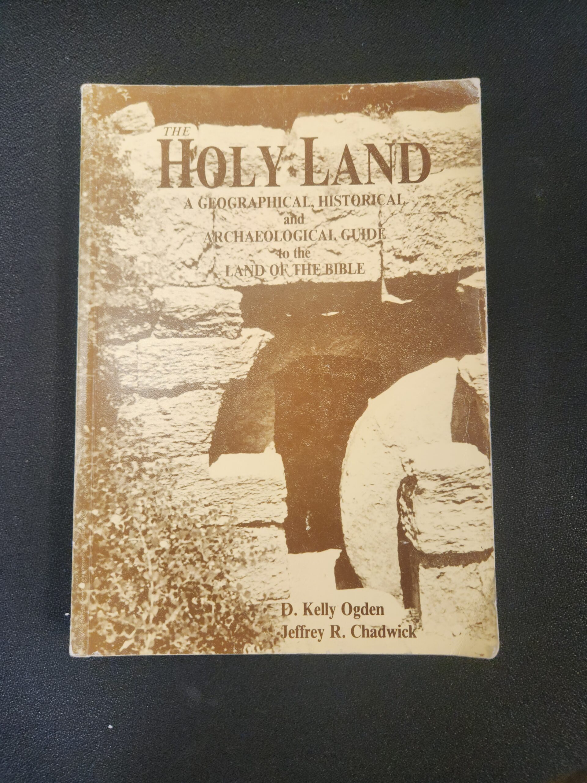 The Holy Land: A Geographical, Historical, and Archaeological Guide to the Land of the Bible by D. Kelly Ogden and Jeffrey R. Chadwick (paperback, 1990) A few pages have some neatly underlined words and passages. Good binding. Previous owner’s name written on back of front cover and a pink sticker on the back of front cover. Several small creases along the edges/corners of cover. A few light scuffs on back cover.