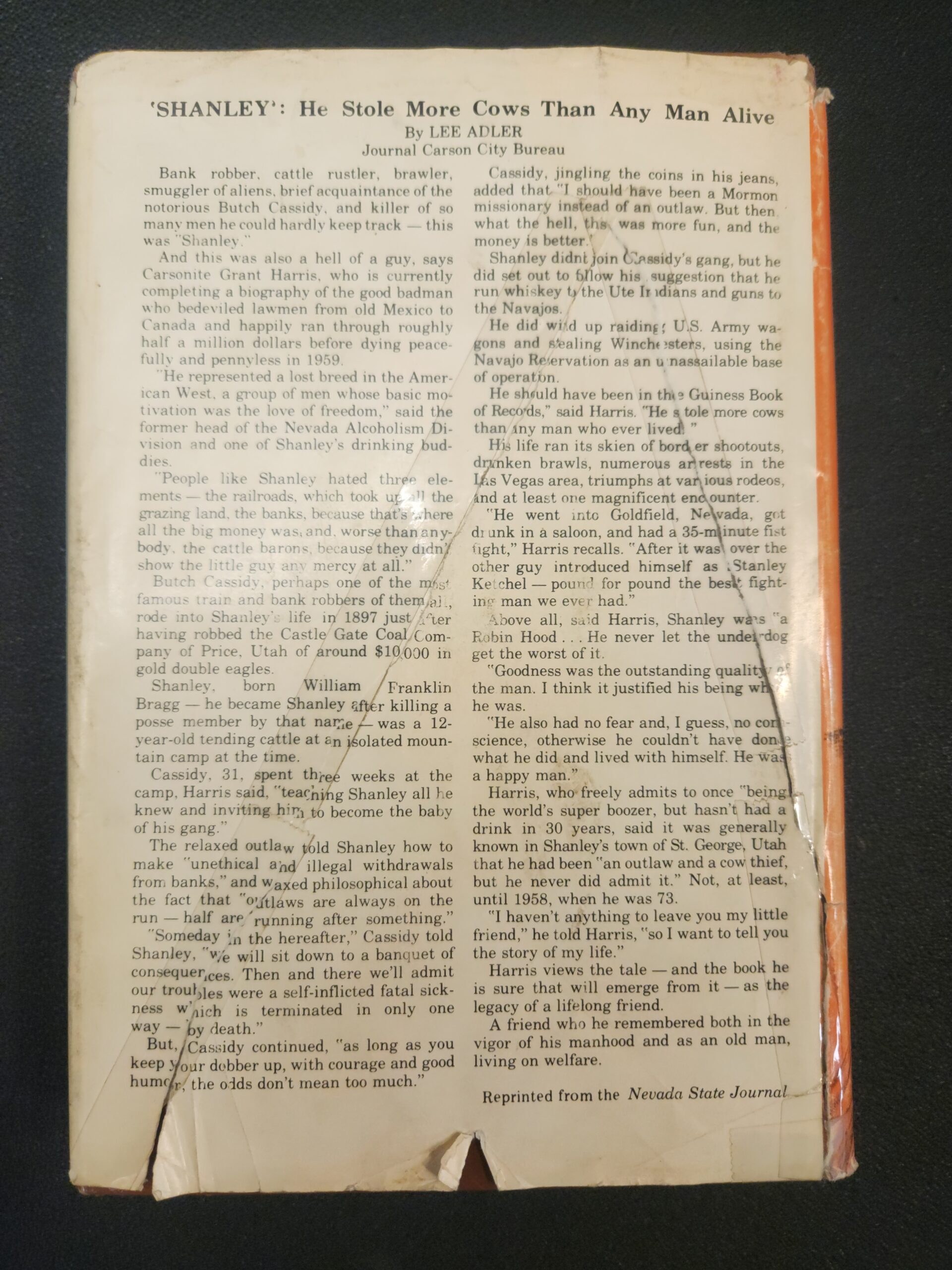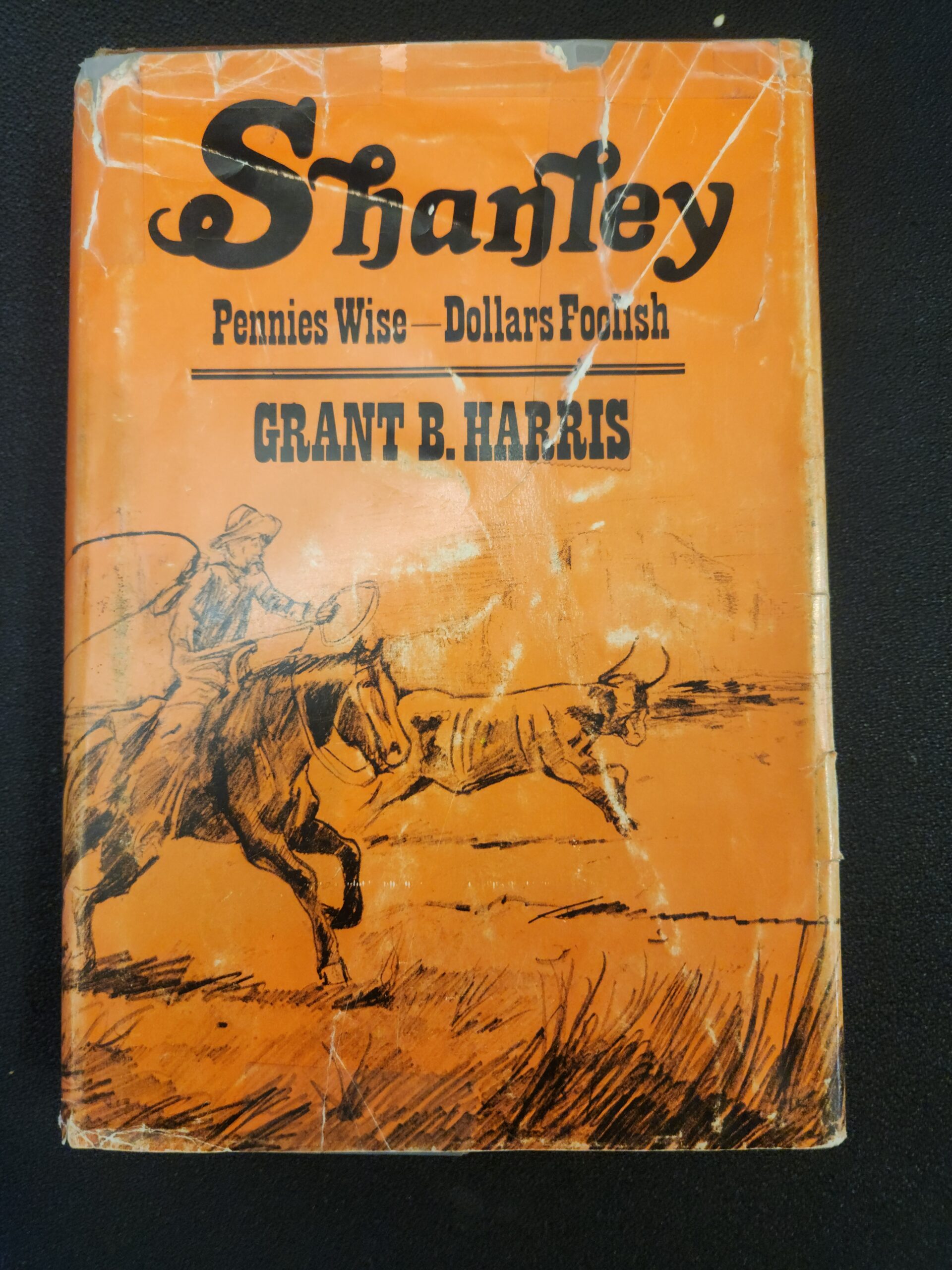 Shanley: Pennies Wise, Dollars Foolish by Grant B. Harris (hardcover + jacket, 1980, 1st Edition) Pages are unmarked. Binding is good. The dust jacket is very worn with heavy tears around the edges, creases, and fading color. Few tears are taped around the edges. The front flyleaf has been torn out, but doesn’t effect the binding or the other pages.