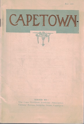 Capetown – The Cape Peninsula – An Illustrated Brochure Descriptive of the Cape Peninsula as a Holiday Resort. Gratis. Issued By: The Cape Peninsula Publicity Association Visitors’ Bureau. No date. 46 pages. Measures about 5″x7″.