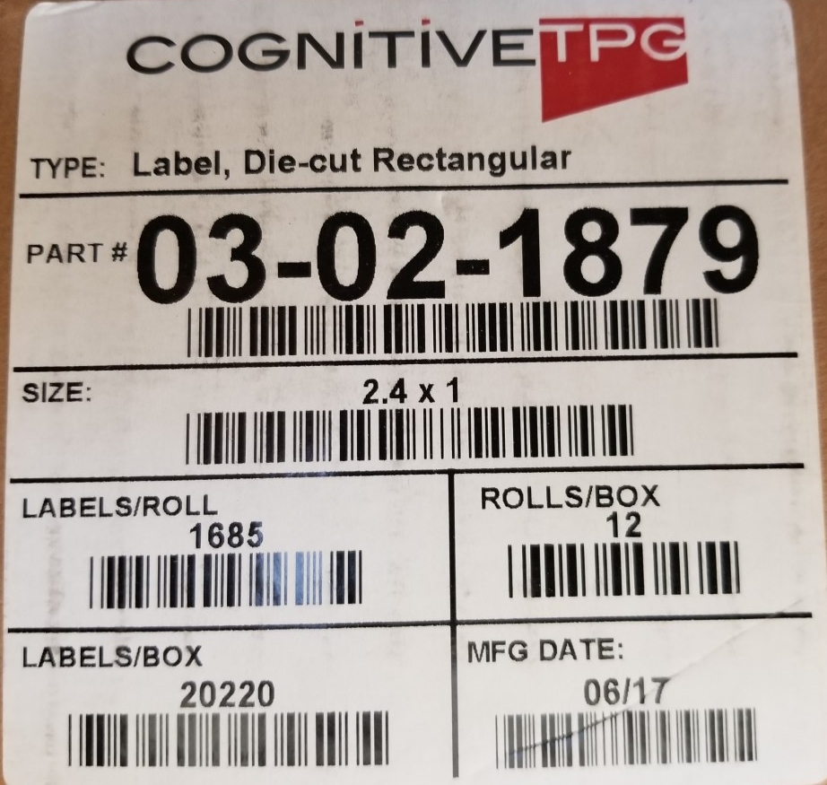 Box of 11 of 12 Rolls ~ CognitiveTPG Labels, Die-Cut Rectangular Part #03-02-1879