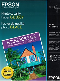 Epson Photo Quality Paper Glossy – Ink Jet – 8.5″ x 11″ Paper – S041124 (Packet of 20 Sheets).