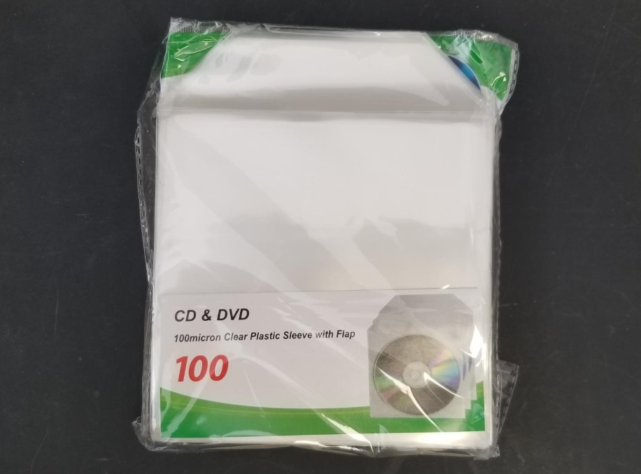 CD & DVD 100micron Clear Plastic Sleeve with Flap — 100 in Package — New as Pictured