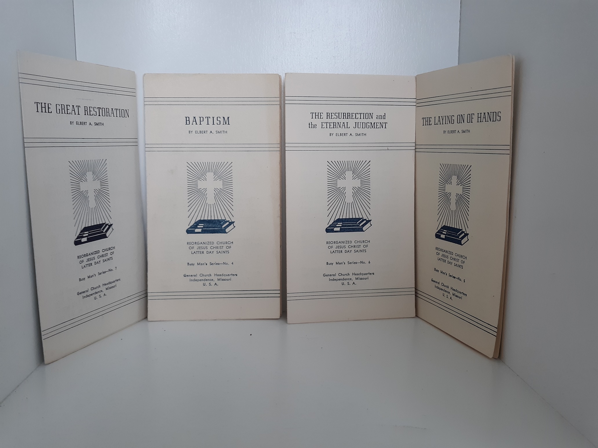 Good condition, small, thin, white pamphlets. The covers may have some minor scuffs, and some wear at the edges. Page 7 has writing in pencil. Text throughout each pamphlet is clean, clear, and legible……………………v1 Bx1283F