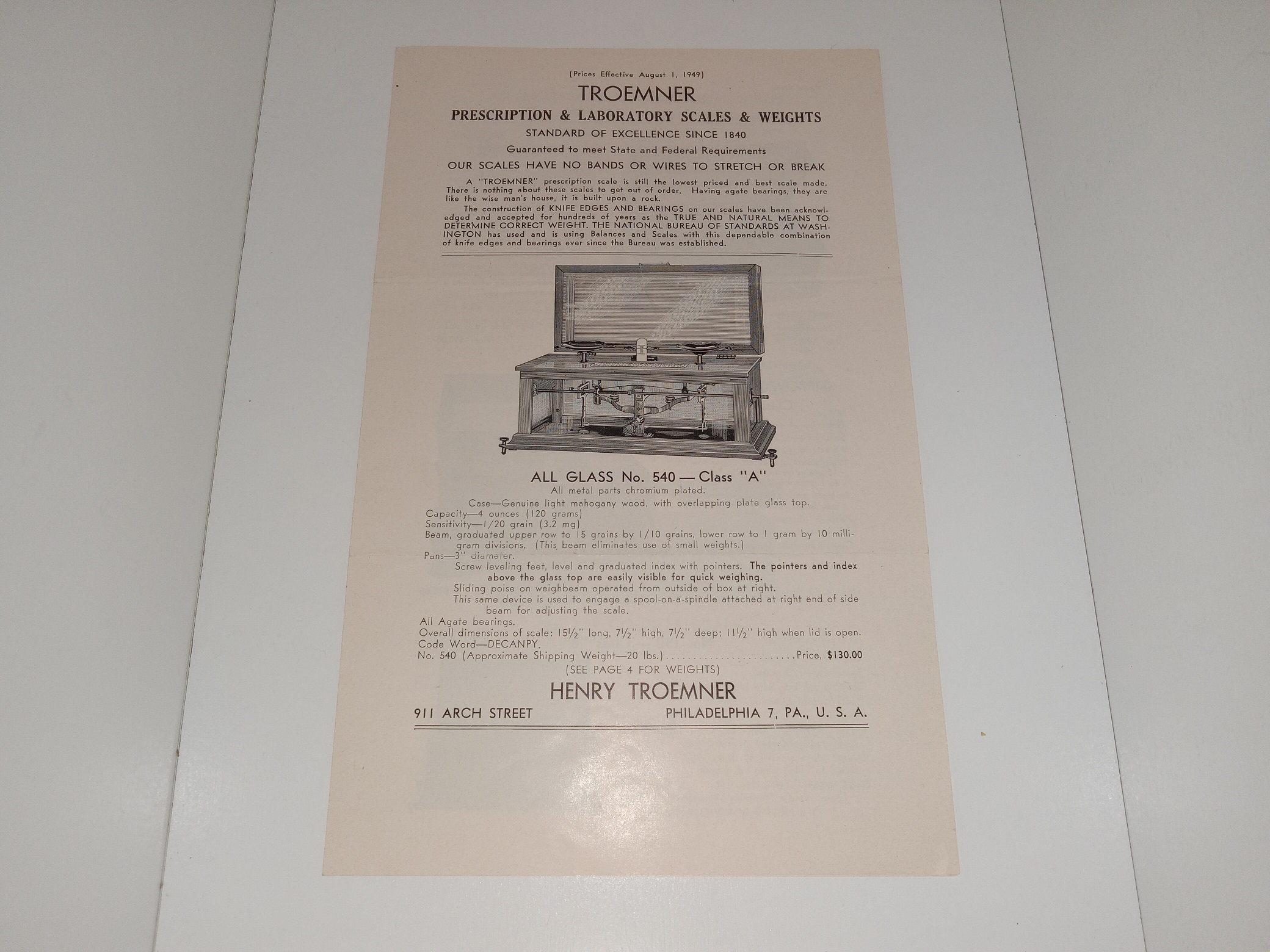 Troemner Prescription & Laboratory Scales & Weights (Prices Effective August 1, 1949)