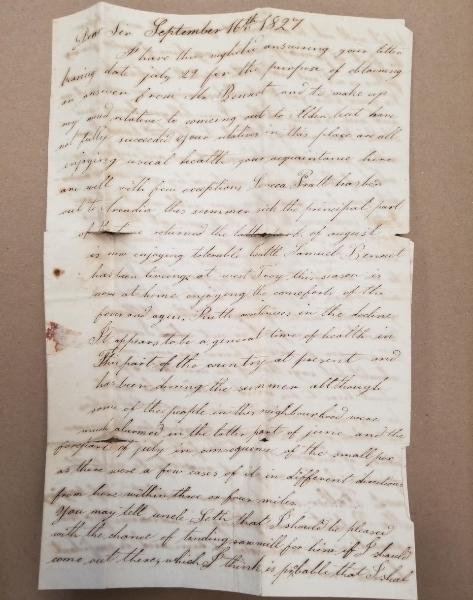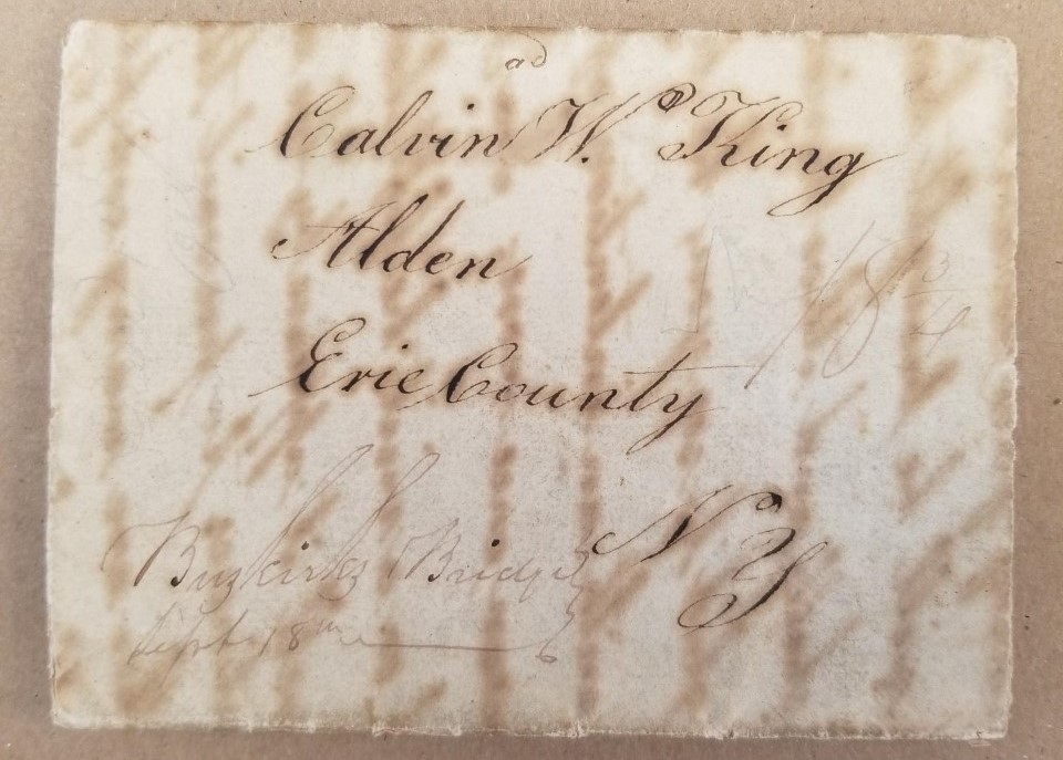 Folded-Up Old Letter — Dated September 16, 1827 — Calvin W. King, Alden, Erie County, New York