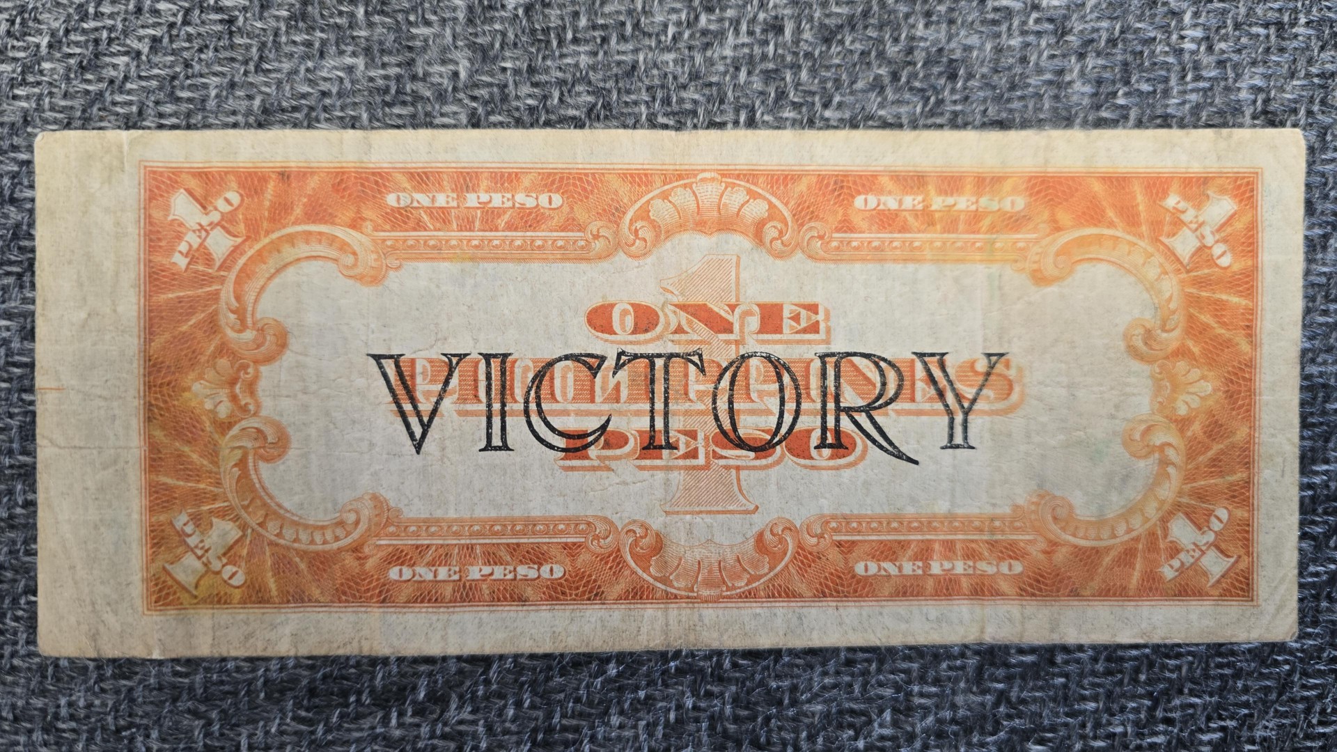 The Japanese Government Five Pesos Bill comes along with it; it is more worn, (We have pictured only the One Peso bill, front and back, but you get both.