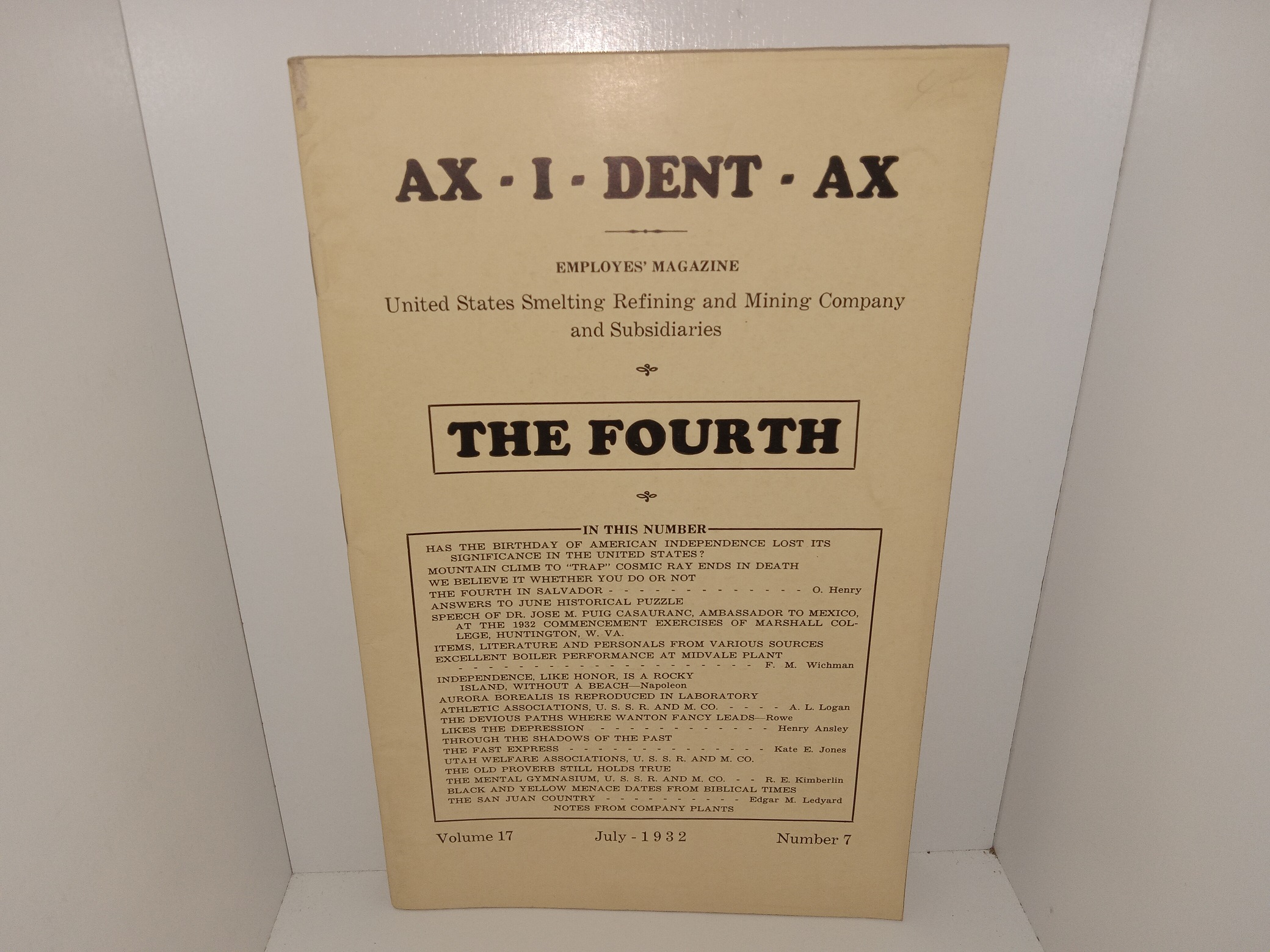 AX – I – DENT – AX: Employees’ Magazine: United States Smelting Refining and Mining Company Subsidiaries: The Fourth: Vol. 17, No. 7, July – 1932