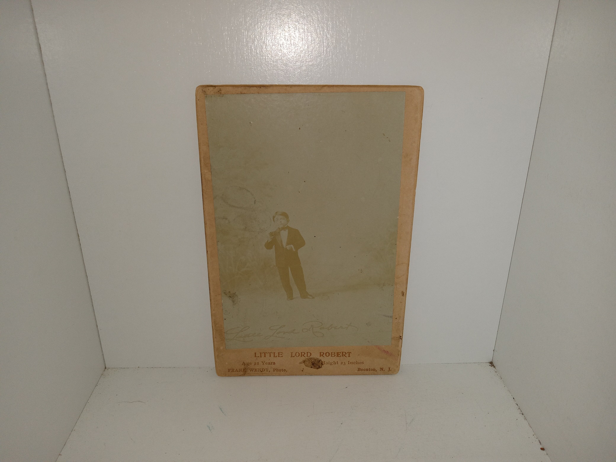 Fair condition cabinet card. The card has some stains, and the back has some writing in pencil, and eraser marks. The photo on the card has faded.