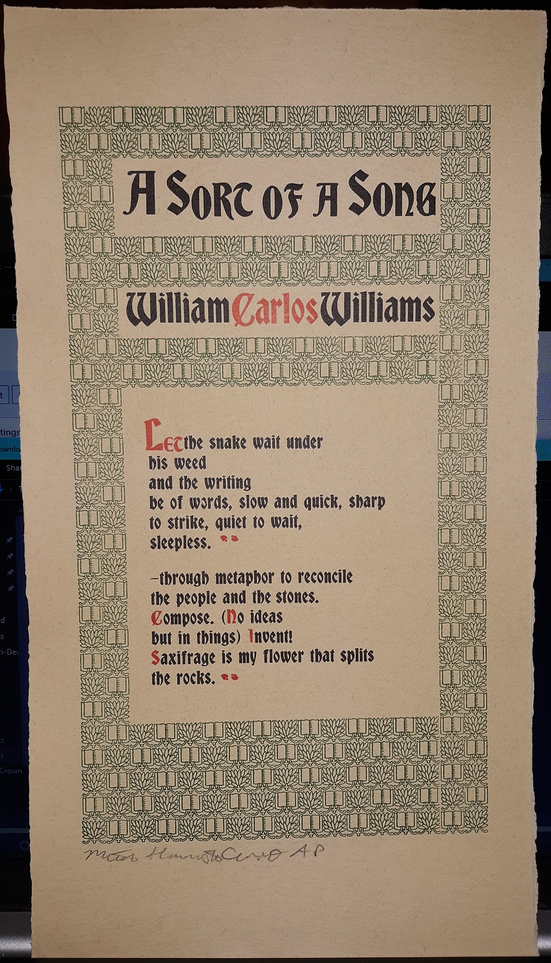 A poem on a single, long sheet of textured paper. The edges are frayed. The front has some writing in pencil, as does the back……………………………v702 Bx1567C