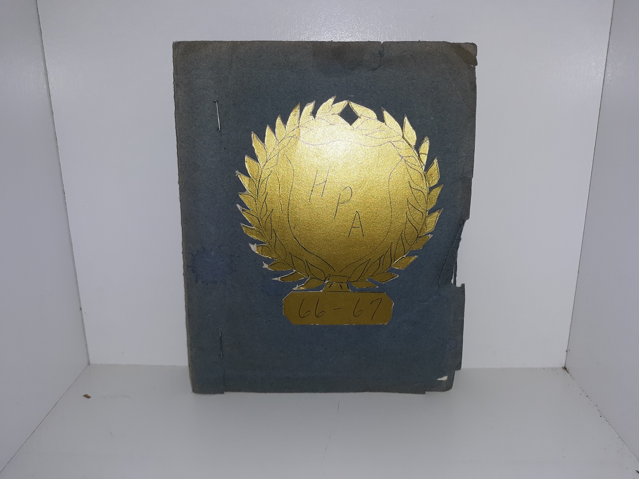 Fair condition, small, thin, staple-bound, faded blue softcover. The cover has tears, creases, heavy fading and discoloration. The first page has writing in pencil. Text throughout is clean, clear, and legible.