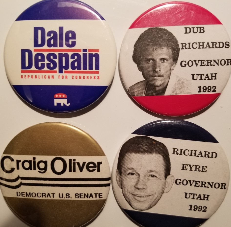 / 4 Utah Political Pins ~ Craig Oliver, Dale Despain, Richard Eyre, Dub Richards