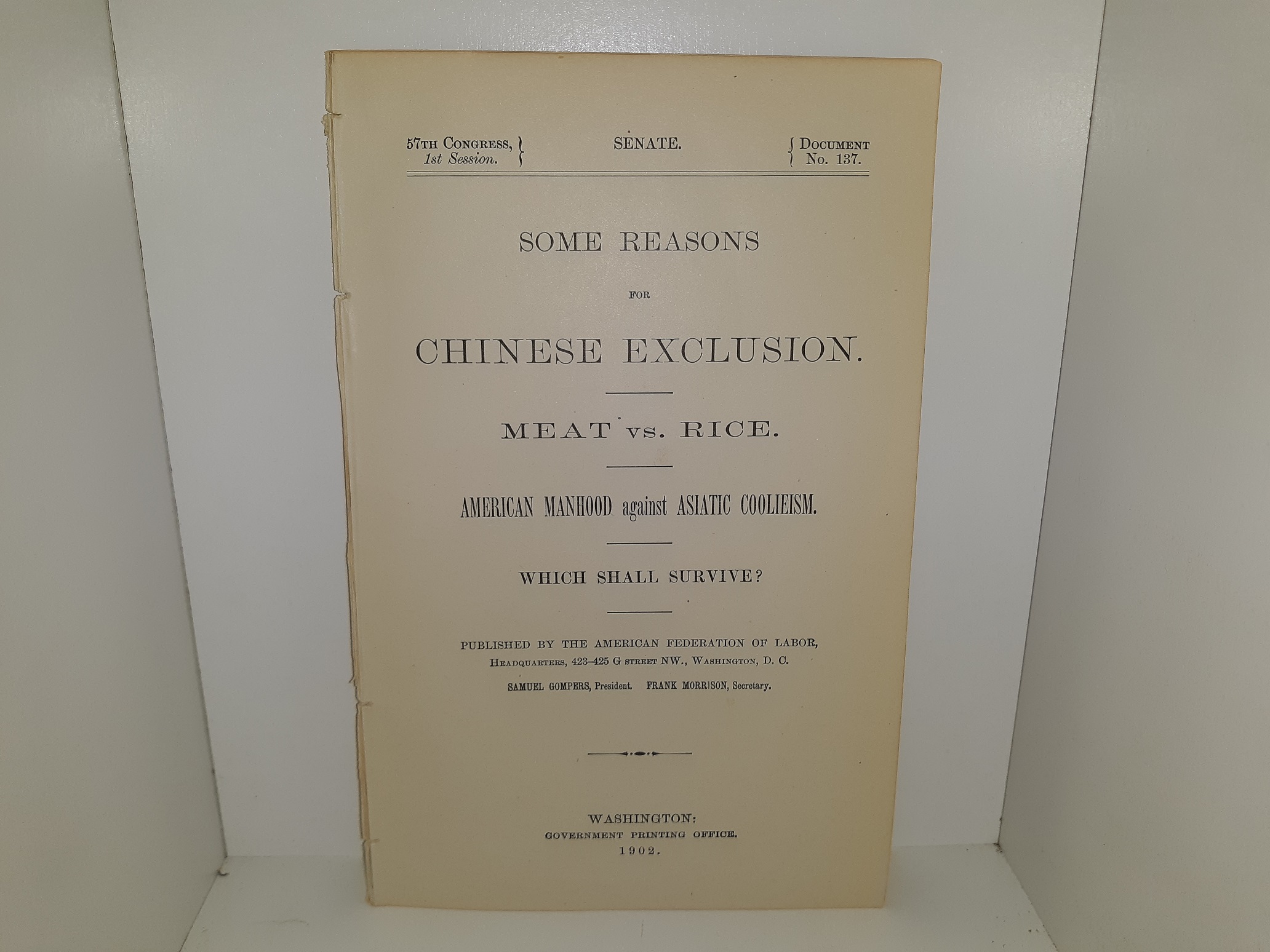 Senat Document No. 137: Some Reasons for Chinese Exclusion. Meat Vs. Rice. American Manhood against Asiatic Coolieism. Which Shall Survive?