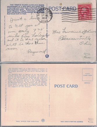 Card 540: Temple Block and Brigham Young Monument, Salt Lake City, Utah.