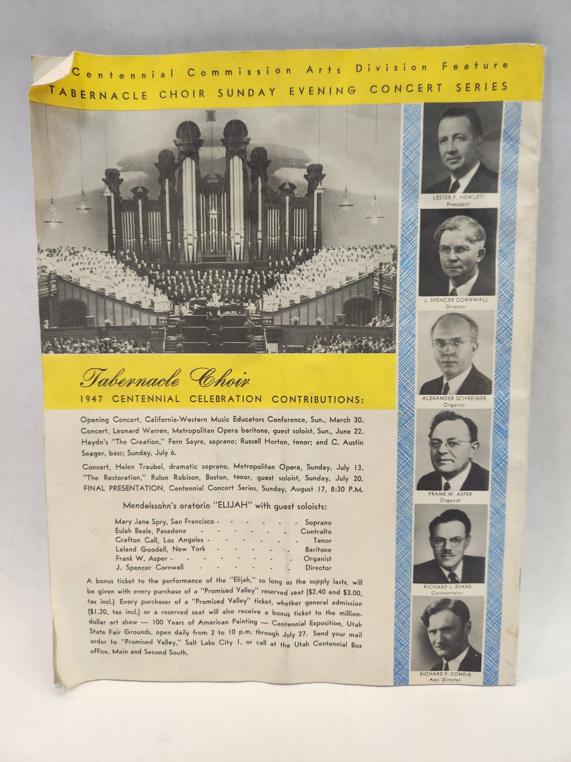 Official Centennial Souvenir Program Arts Division:: Promised Valley Street Parades, July 21 to Aug. 9, July 23-24 (1947, Paperback) No marks or writing on pages. Binding is good. Corners and edges shows wear with bend marks and scuff marks. Cover, front and back, has a couple bend marks and smudge marks.