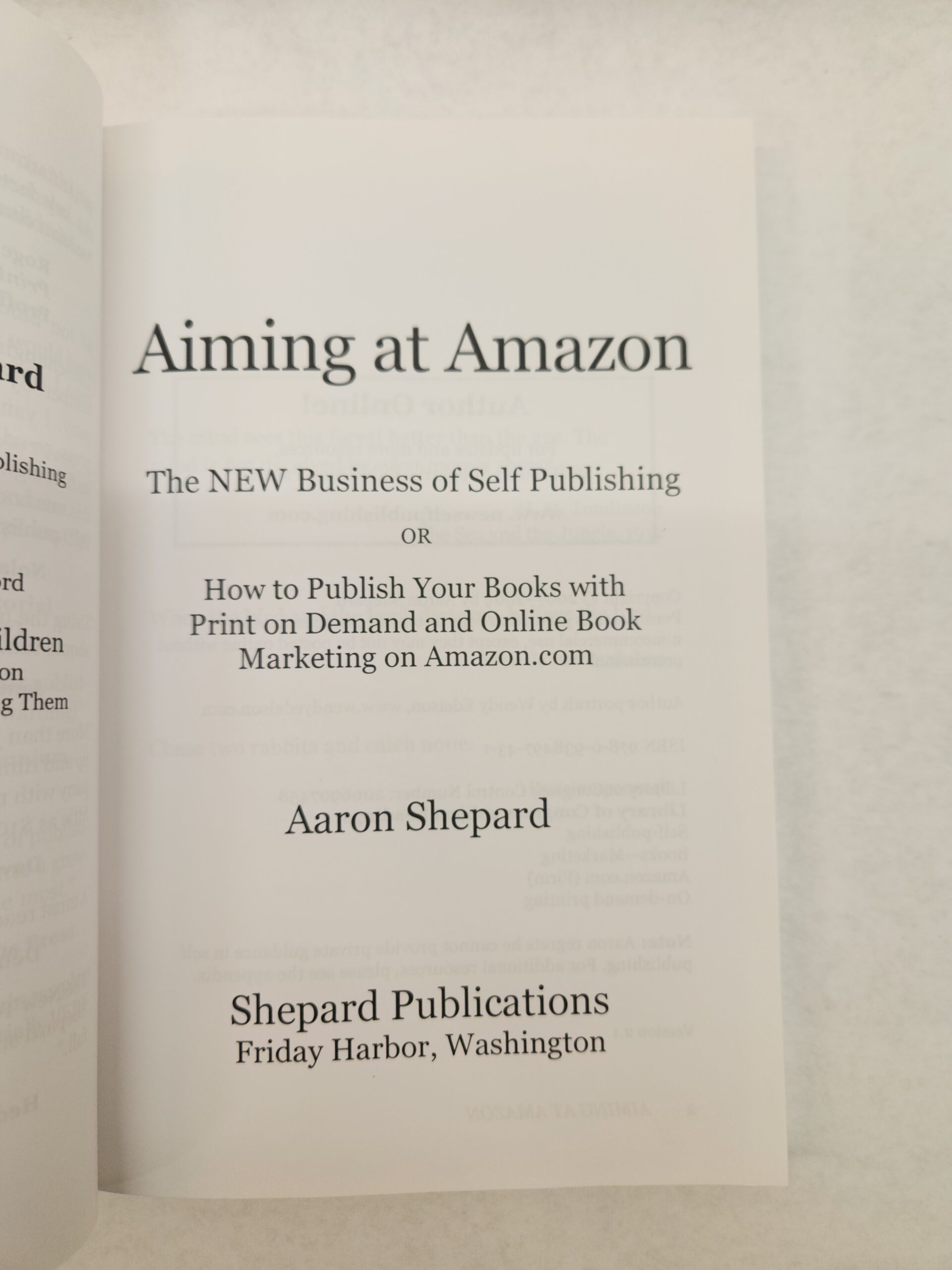 Aiming at Amazon:: The NEW Business of Self Publishing- Aaron Shepard (2007, Paperback) No marks/writing on pages. Corner and edges show little to no shelf wear. Binding is good.