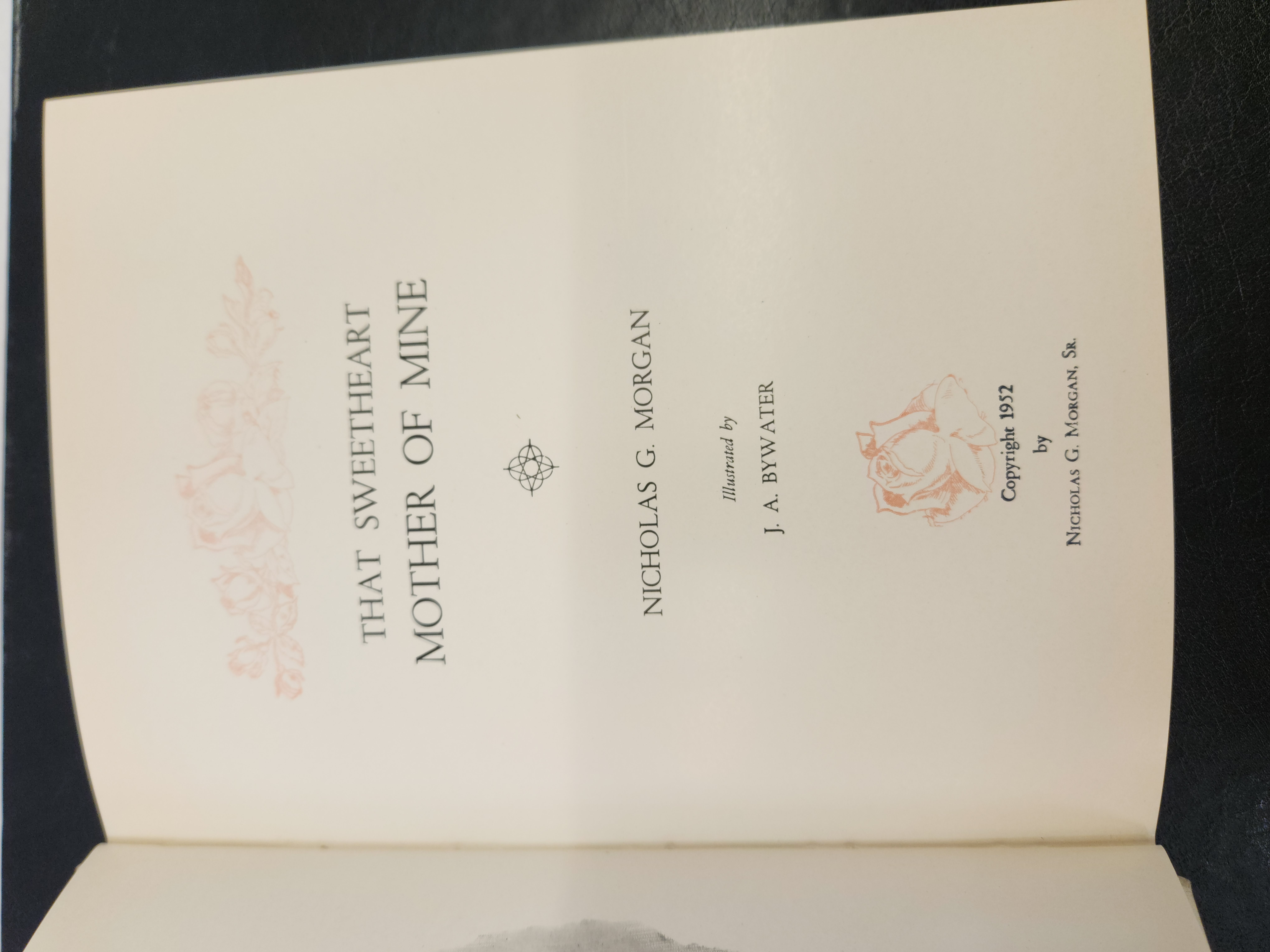 That Sweetheart Mother of Mine (1952, Hardcover) No writing/marks on pages, except for on the first page is a name written in pen. Corner and edges show some shelf wear. Binding is good. Cover shows some wear with scuff/smudge marks.