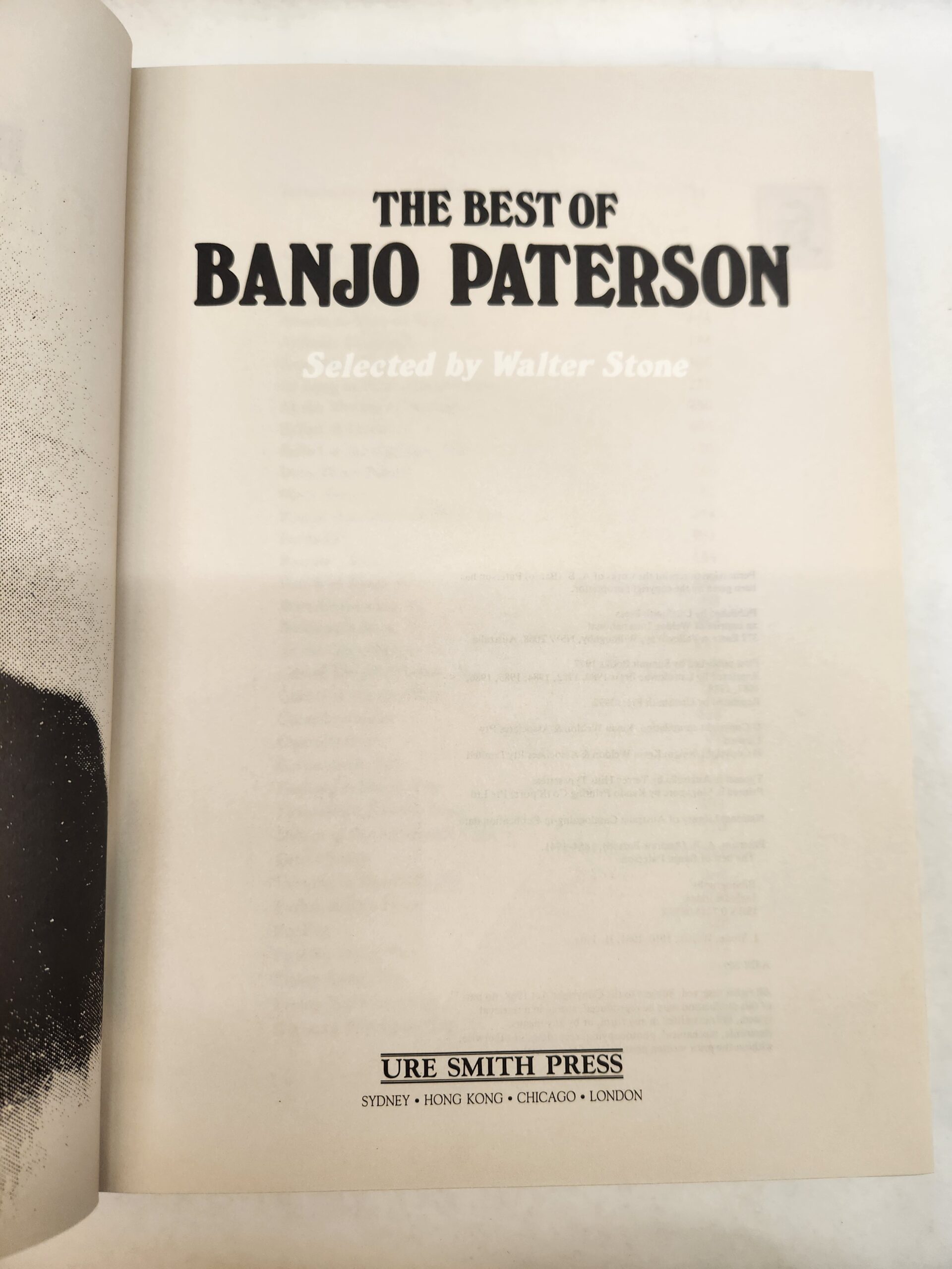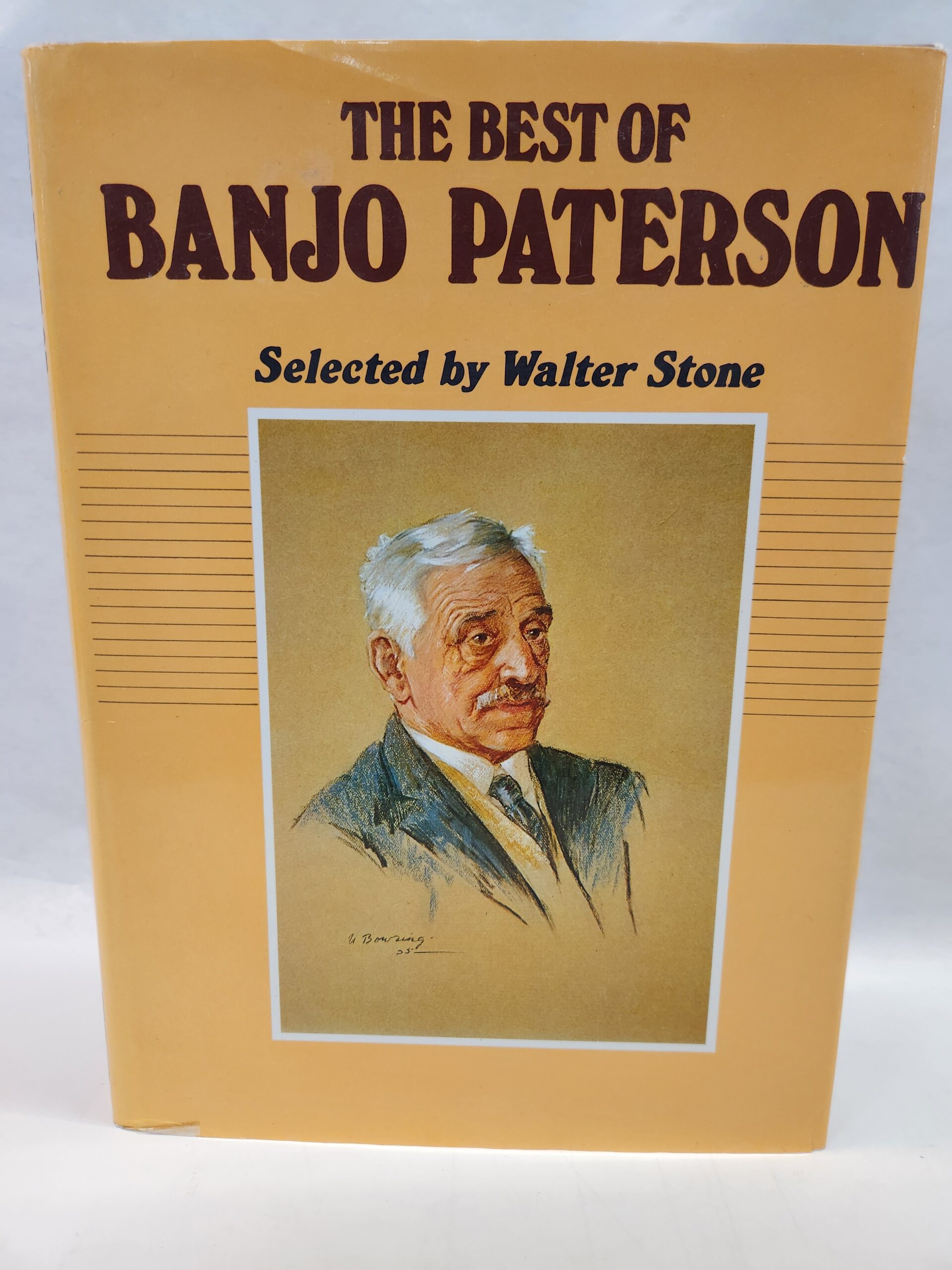 The Best of Banjo Paterson:: Selected by Walter Stone (Hardcover w/ Dust Jacket) No marks or writing on pages. Corners and edges show some shelf wear with small/light scuff and a little de-lamination. Binding is good. Cover, front and back, has some light scratch marks and smudge marks. Some blue stain on top portion of page edge end.