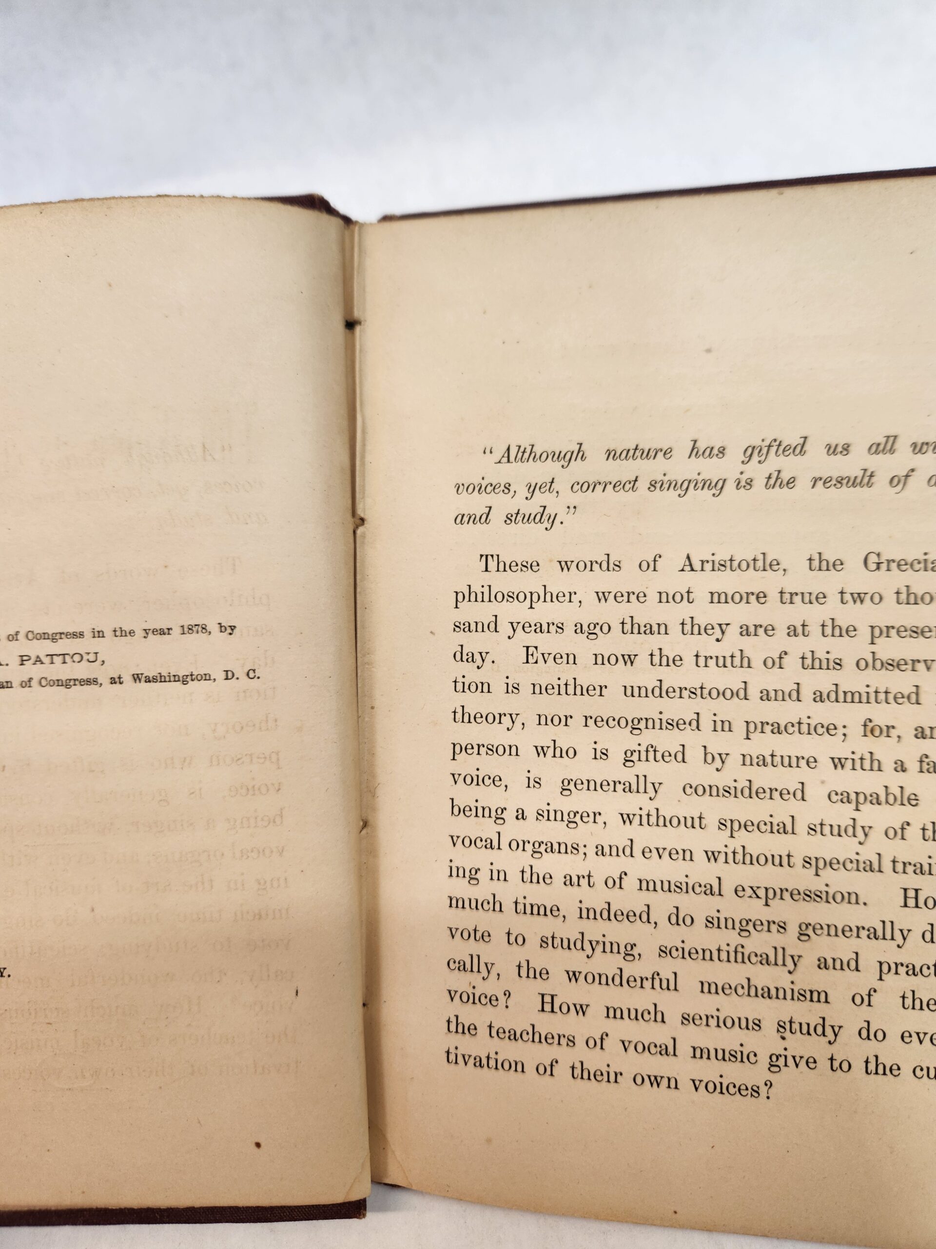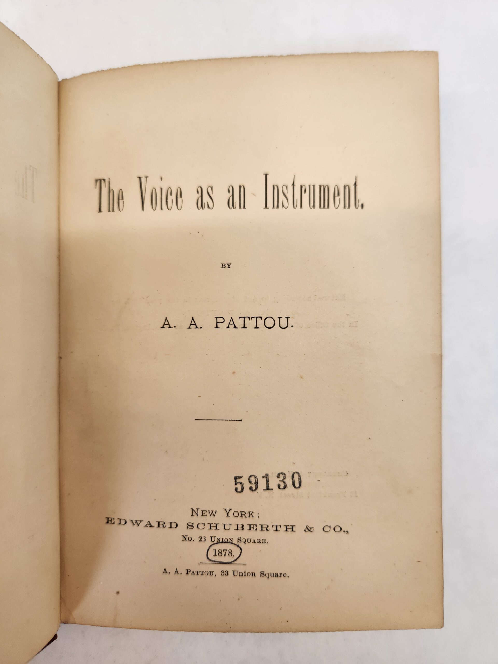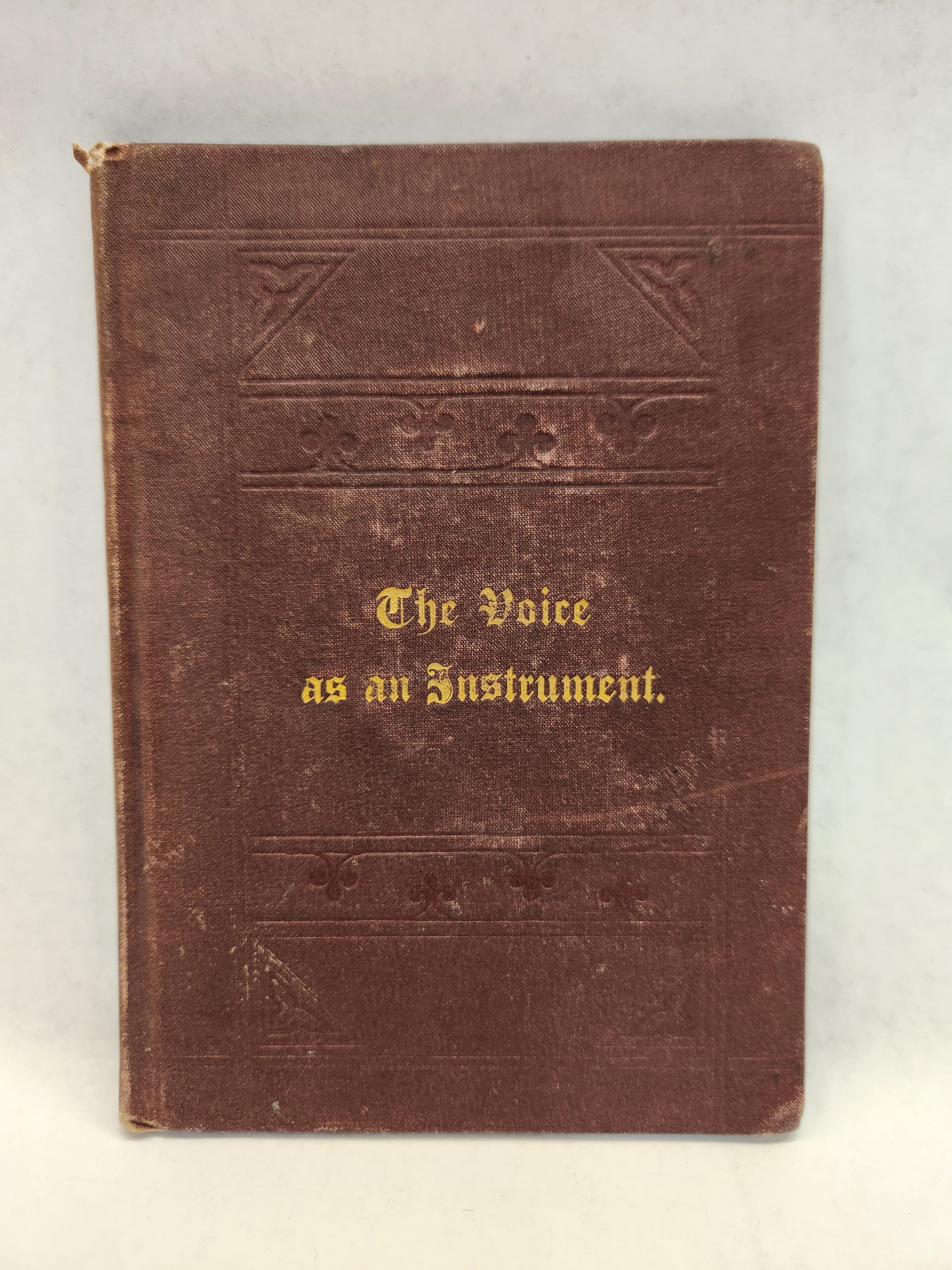 The Voice as an Instrument (1878, Hardcover) No marks or writing on the pages, except for a name written on first blank page and a stamp on last blank page. The binding is good but starting to loosen slightly (see picture in gallery for example). Corners and edges show shelf wear with dents, scuffs, small tear (on top of spine), and scratches. The cover, front and back, has some scuff, fading, smudges, and light scratch marks.