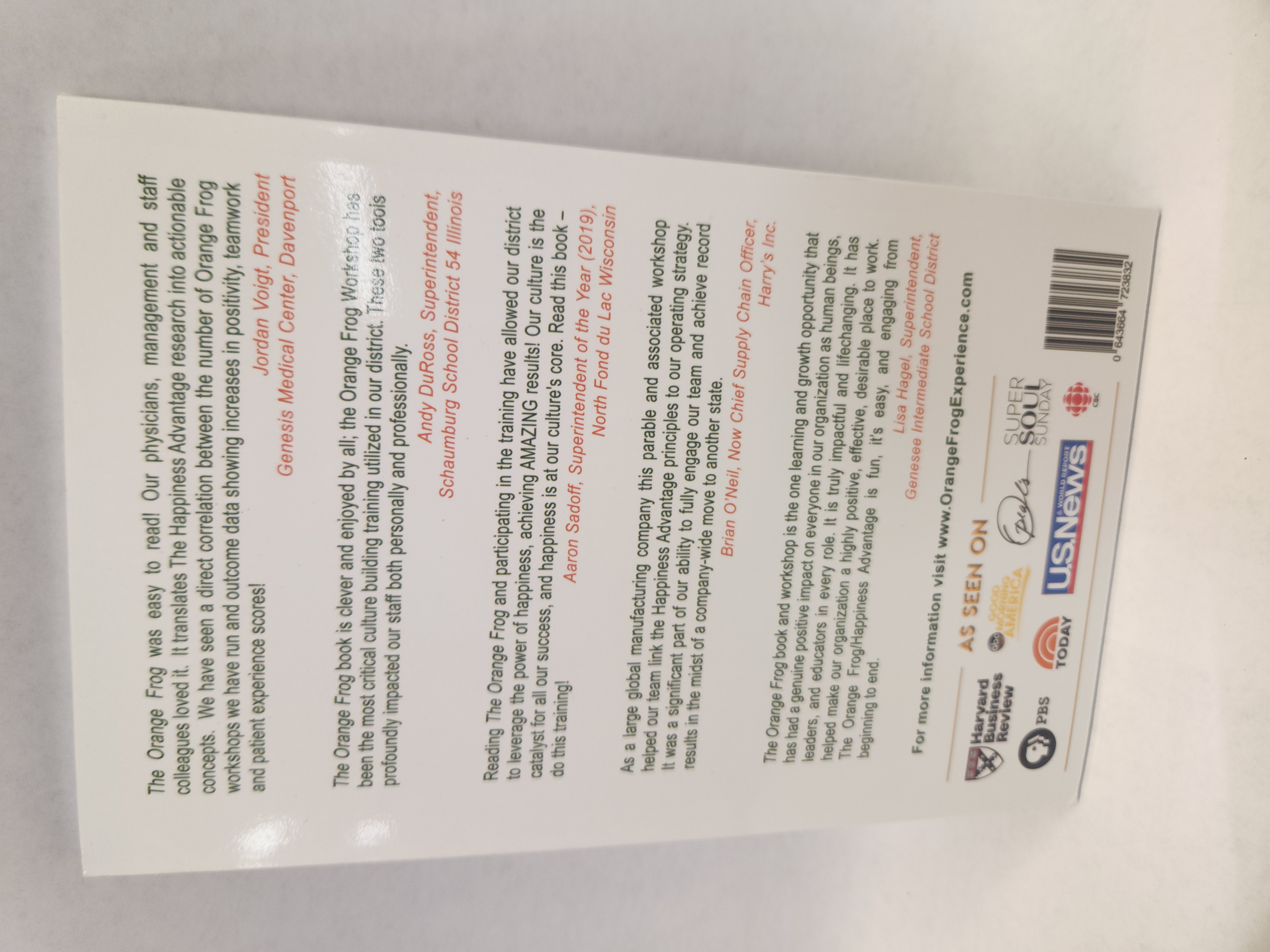 The Orange Frog:: A Parable based on Positive Psychology (2016, Paperback) No marks/writing on pages. Corner and edges show little to no shelf wear. Binding is good.