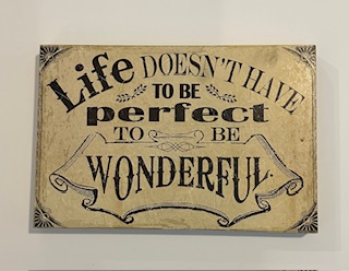 Hanging wall art quote, inspirational, 2013. 12 x 8 x 1, cutout/keyhole for hanging. R.eborn, Resign & Design (R112024e)