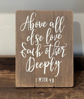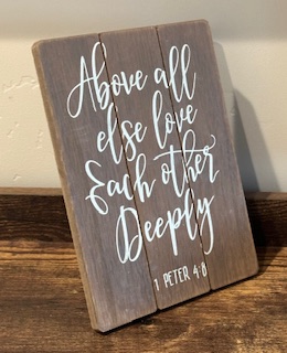 Sign ~ “Above all else love each other deeply, 1 Petter 4:8” (6 in x 8 in)