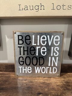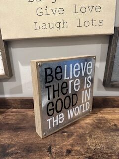 Sign ~ “Believe There is Good in the World” ~ Wood (8 in x 8 in x 1.5 in)