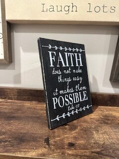 Quaint, unique, cute, decorative sign, inspirational, and great as a gift or dressing up the shelf. Stand alone, wood, Resign & Design. R.eborn R1.4.24.p