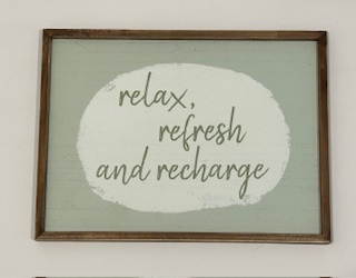 Sign ~ “relax, refresh and recharge” ~ Wood ~ (16 in x 11 in)