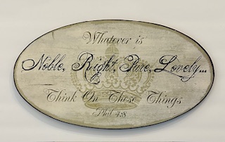 Sign ~ Wall Decor ~ “Whatever is Nobe, Right, Pure, Lovely… Think on These Things, Phil 4:8” (18 in x 10 in x 1 in)
