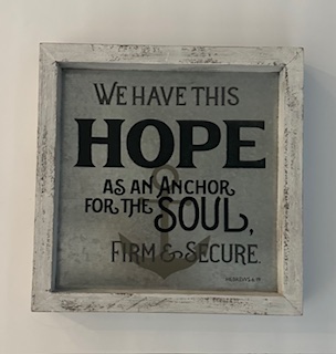 Sign ~ “We Have this hope as an anchor for the soul, Firm and secure.” Hebrews 6:19 ~ 11 in x 11 in x 2 in