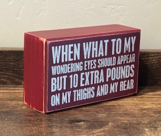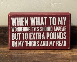Sign ~ “When what to my wondering eyes should appear but 10 EXTRA POUNDS on my thighs and my rear” (5 in x 3 in x 2 in)