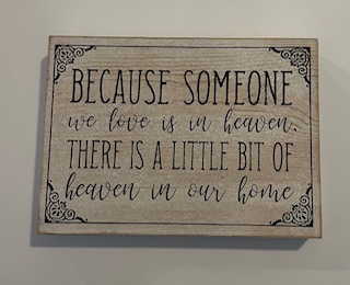 Sign ~ Wall Art ~ “Because someone we love is in heaven, There is a little bit of heaven in our home”