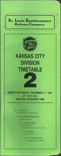 St. Louis Southwestern Railway Company: Cotton Belt Route: Kansas City Division Timetable 2 (Effective Sunday, December 11, 1983 at 12:01 A.M Central Standard Time)