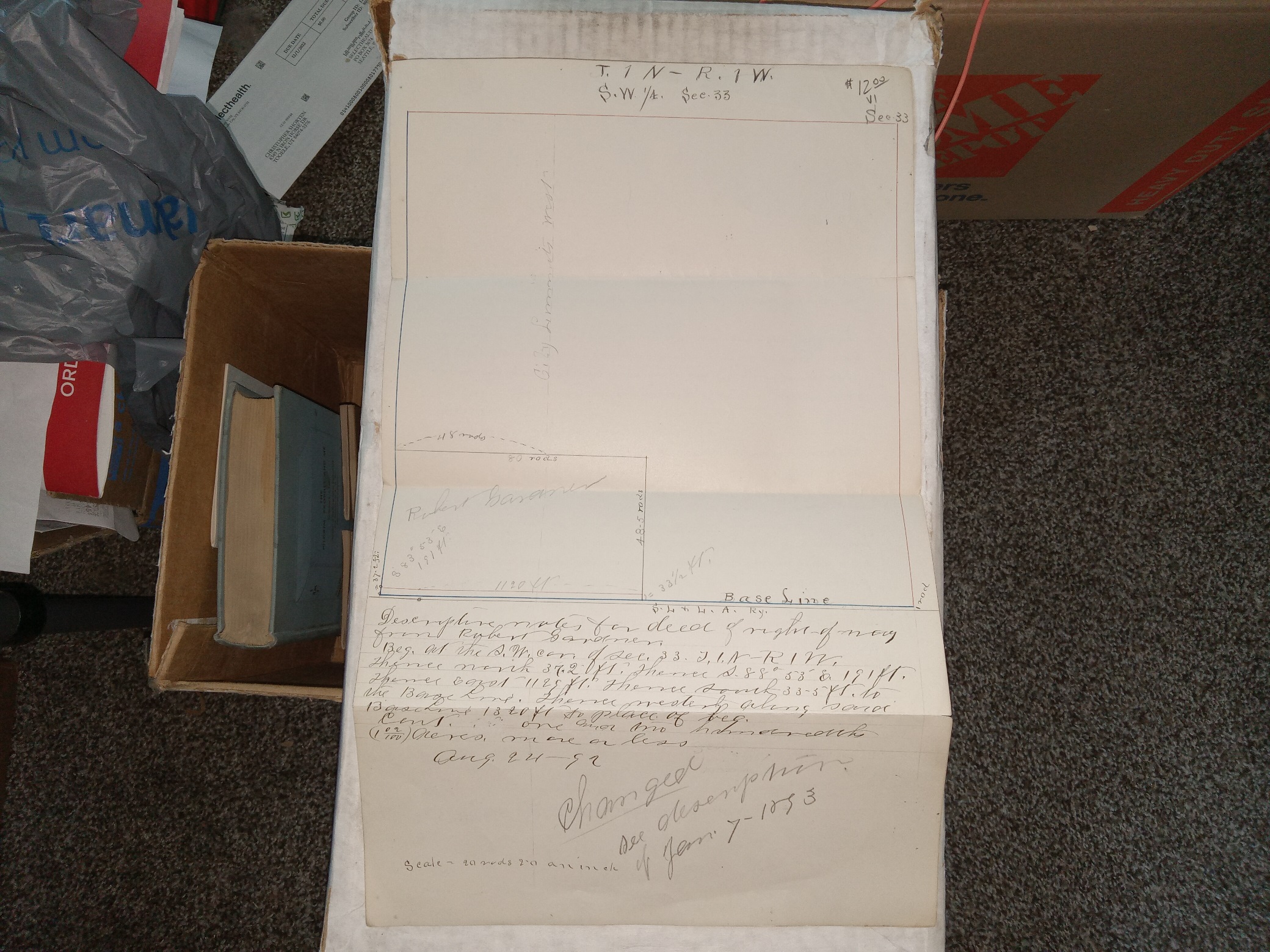 Fair condition certificate with 3 horizontal creases. The page has some tiny tears at the creases, some wrinkling, and some notes written in pen and pencil.